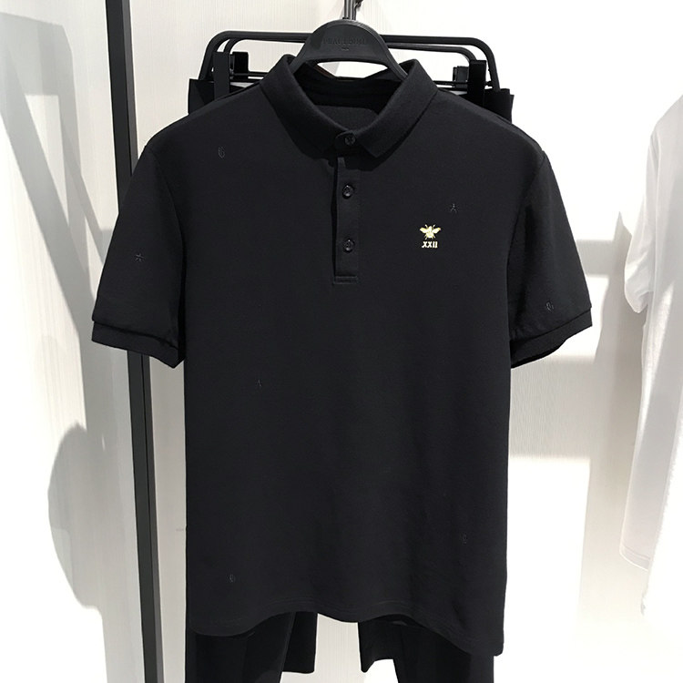 Летняя хлопковая футболка polo для отдыха, черная футболка с коротким рукавом, Гонконг, с вышивкой, облегающий крой