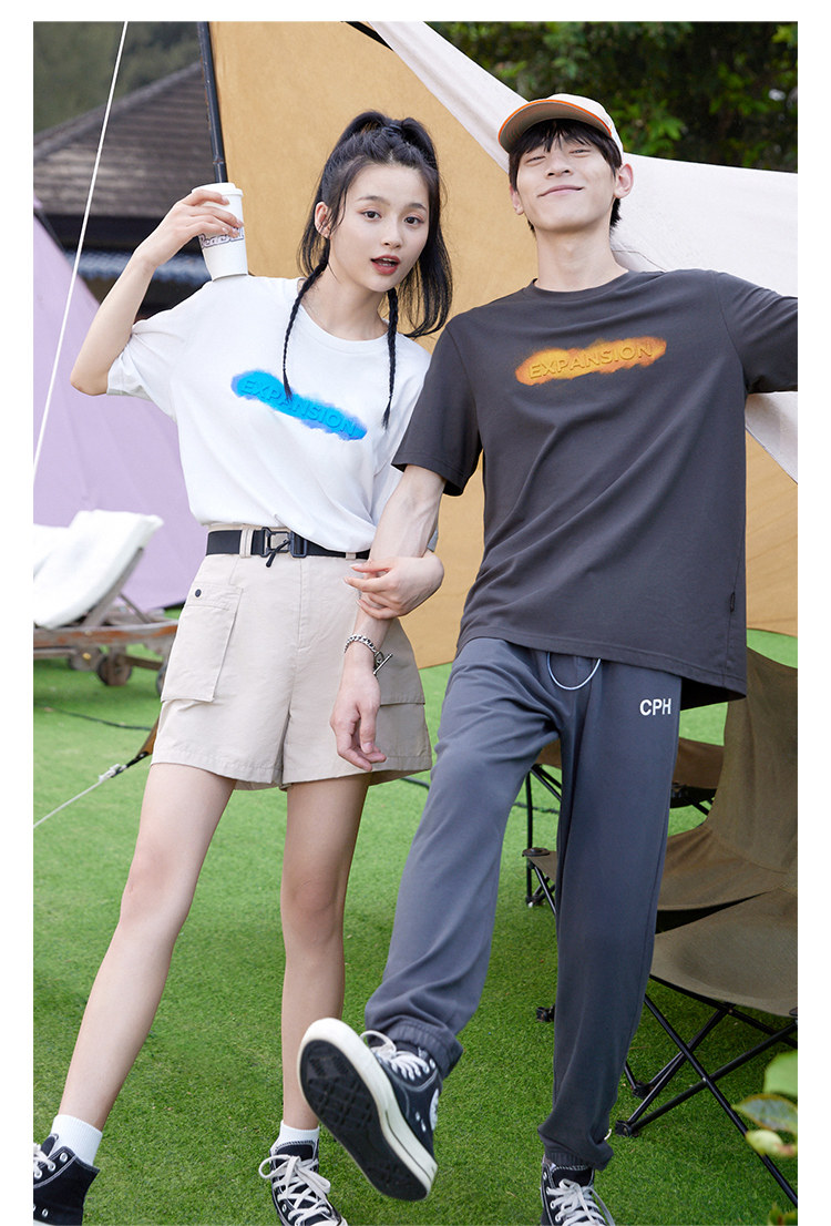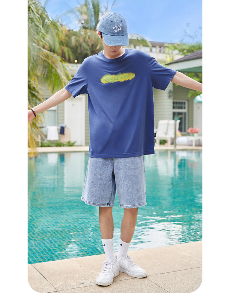 Универсальная комфортная футболка с коротким рукавом с круглым воротником для отдыха, принт