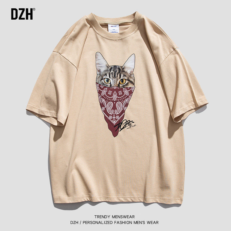 Tide, летняя хлопковая трендовая футболка с круглым воротником, короткий рукав, оверсайз