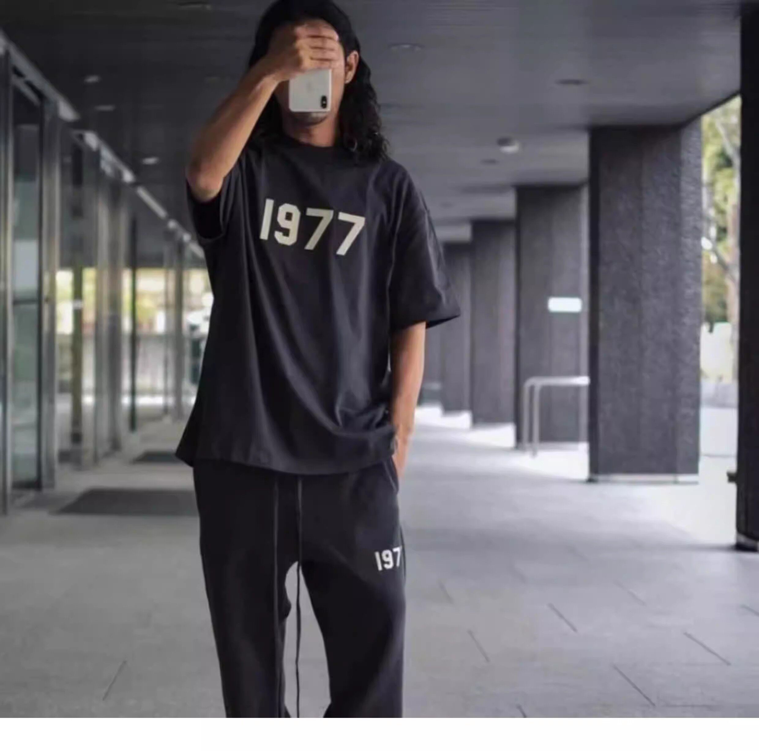 FOG multi-line ESSENTIALS флокированное слово 1977 года, модный бренд, свободная мужская футболка с короткими рукавами и половиной рукава
