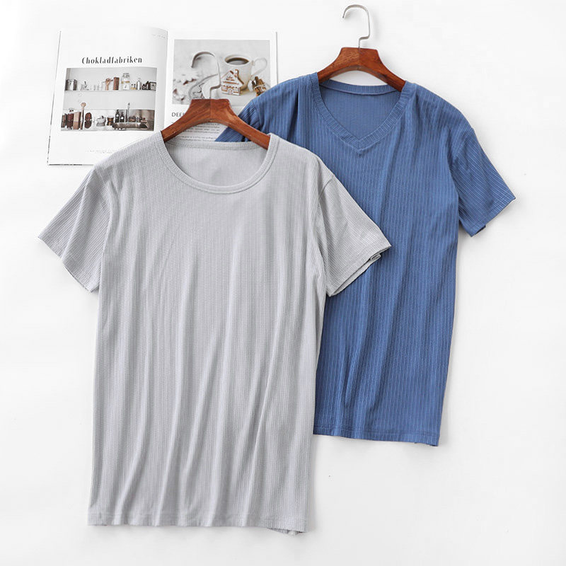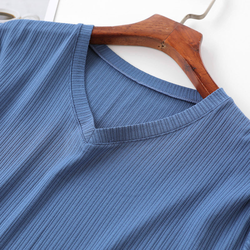 Базовая летняя тонкая приятная телу однотонная футболка с коротким рукавом с круглым воротником, V-образный вырез, свободный крой