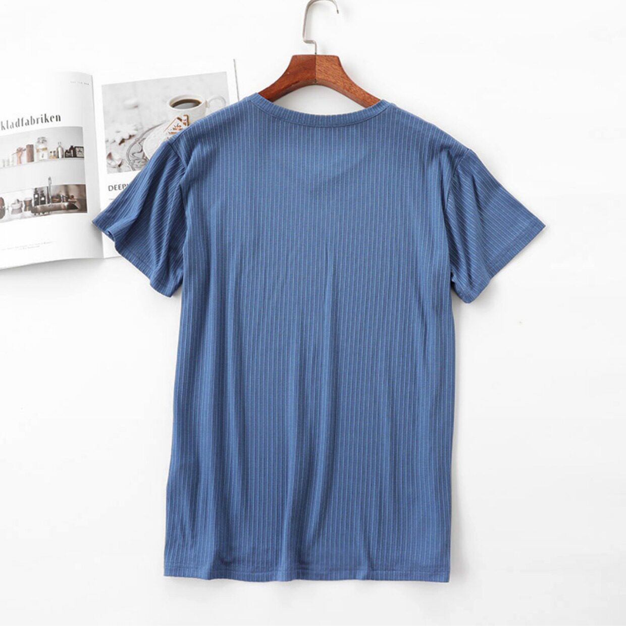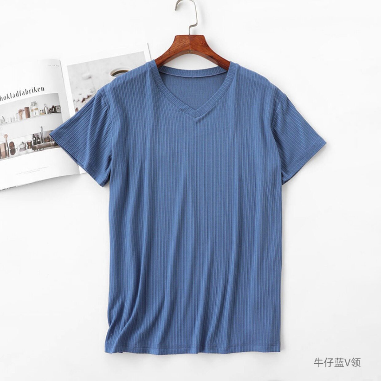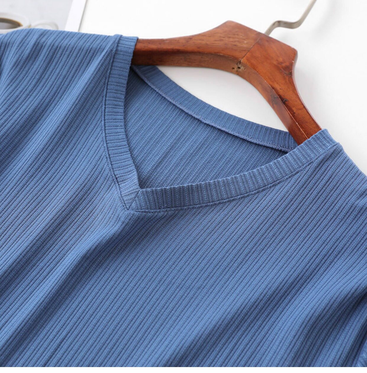 - Джинсовый, V-образный вырез