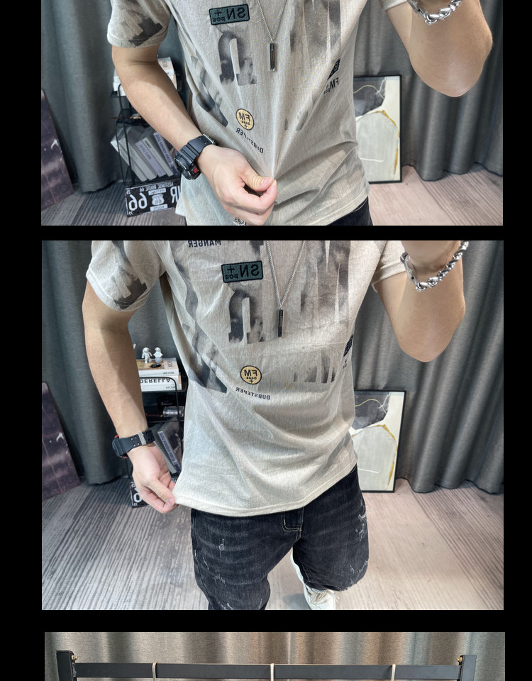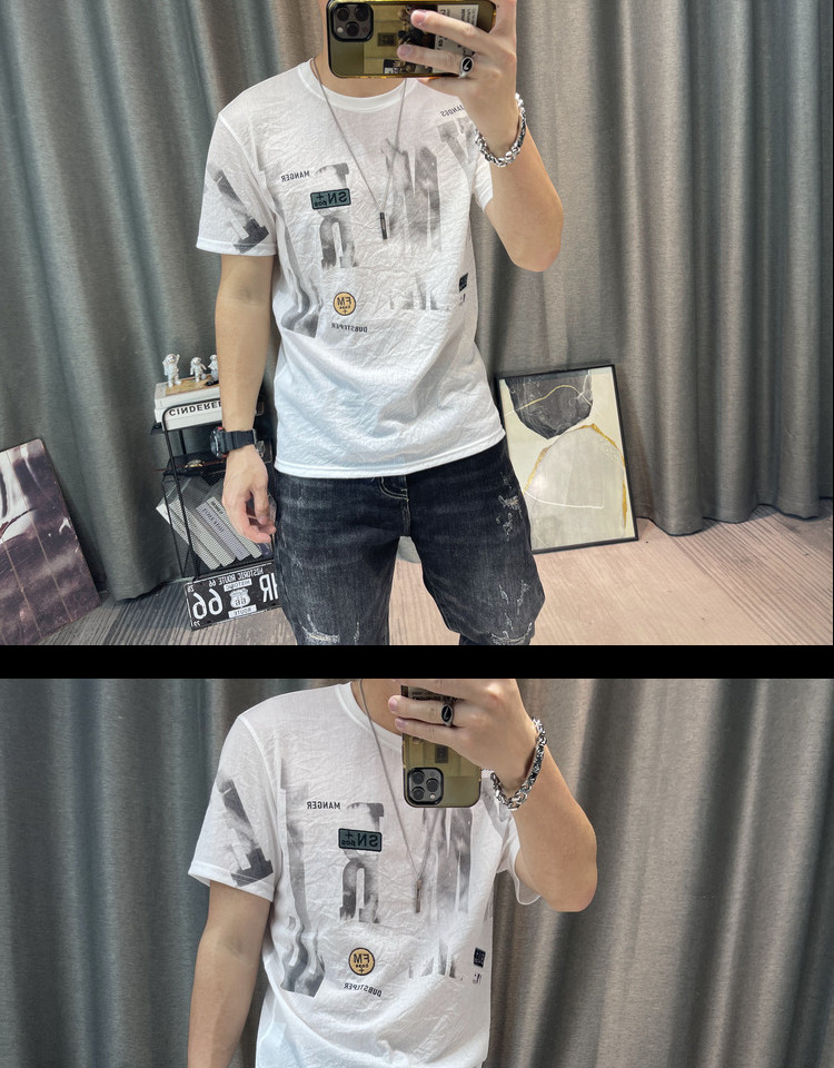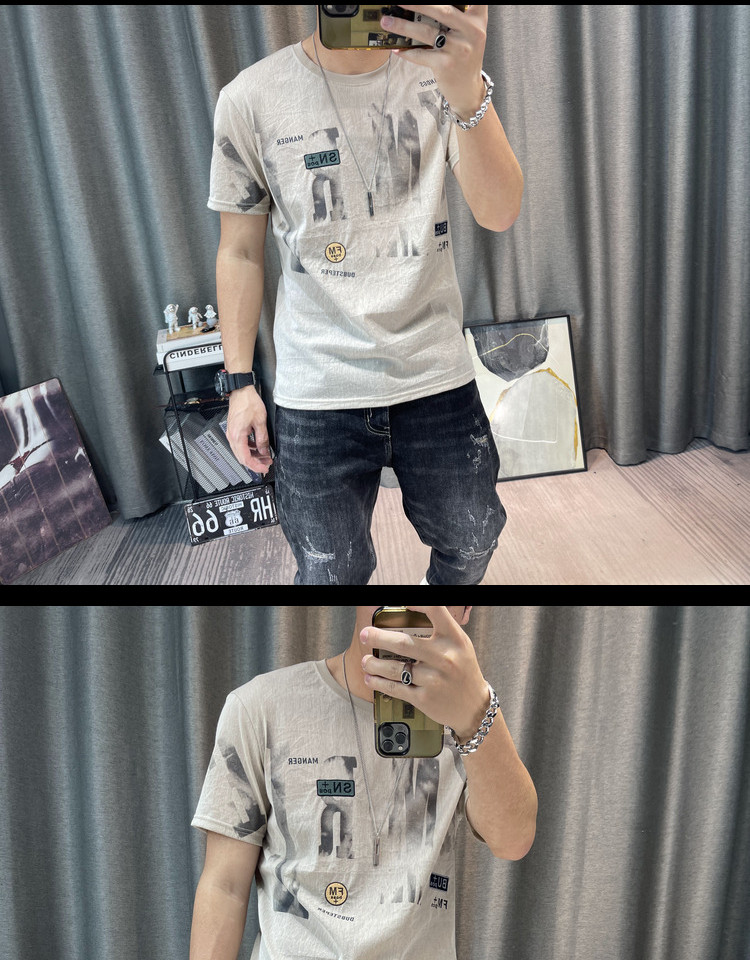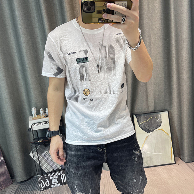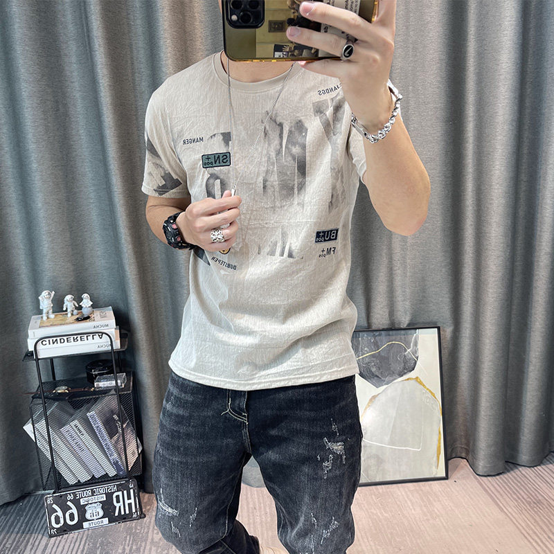 Футболка, Гонконг, городской стиль, короткий рукав, из хлопка и льна