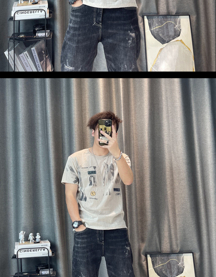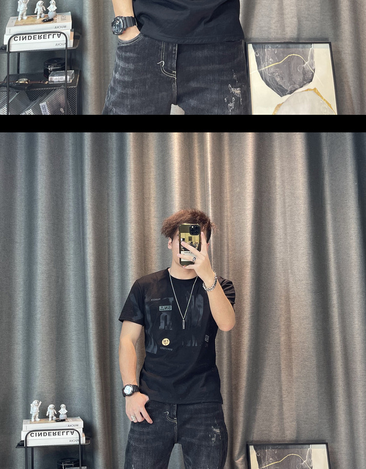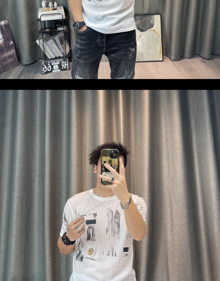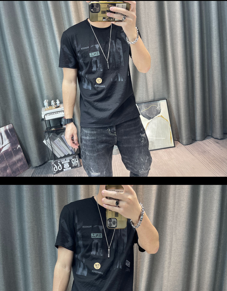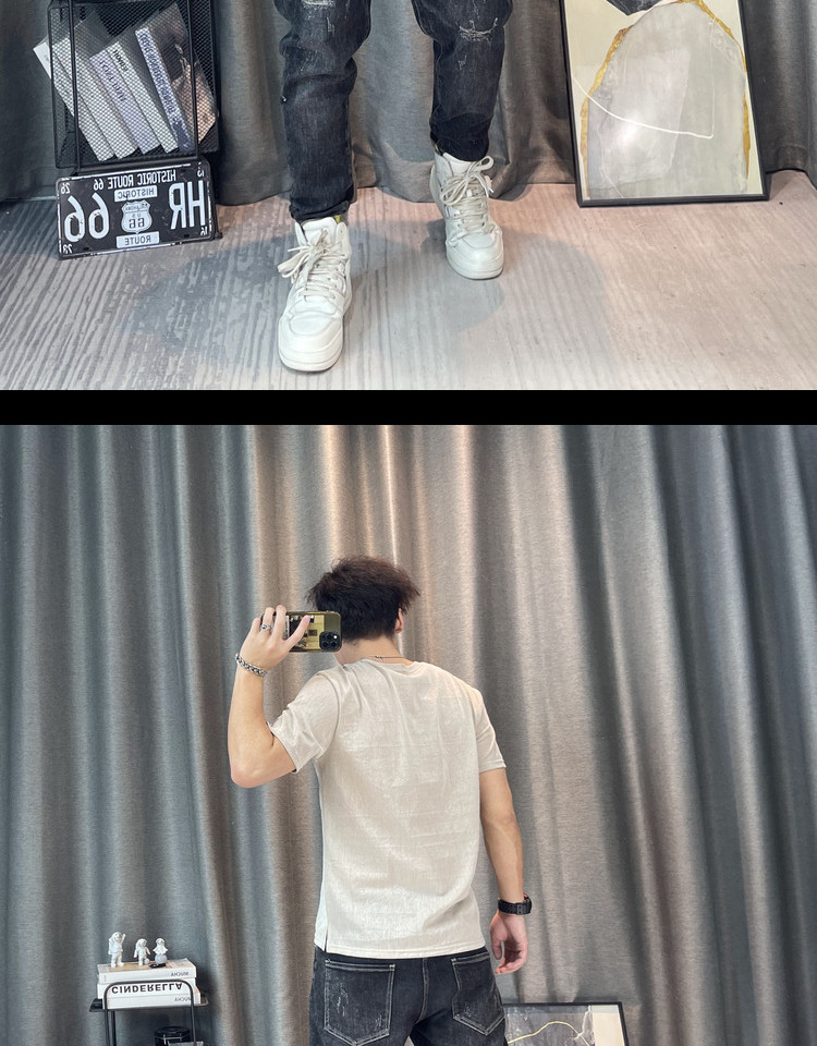 Футболка, Гонконг, городской стиль, короткий рукав, из хлопка и льна