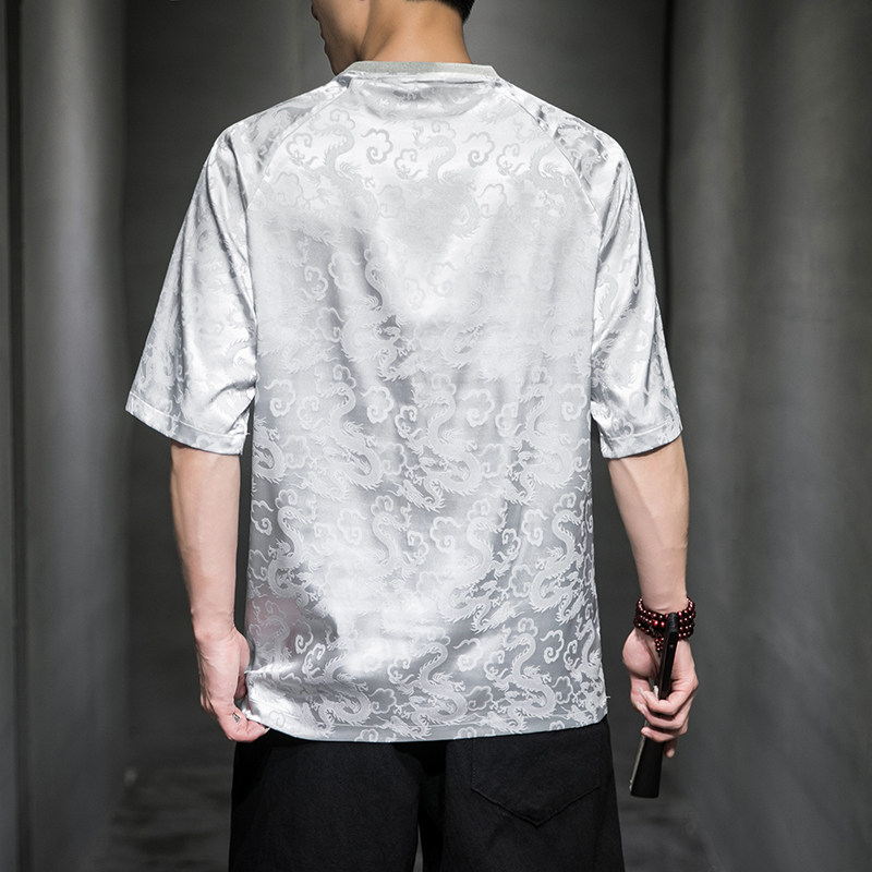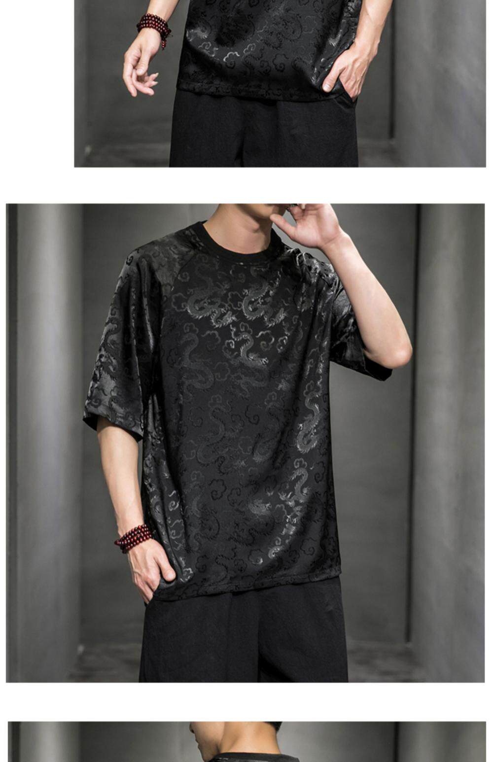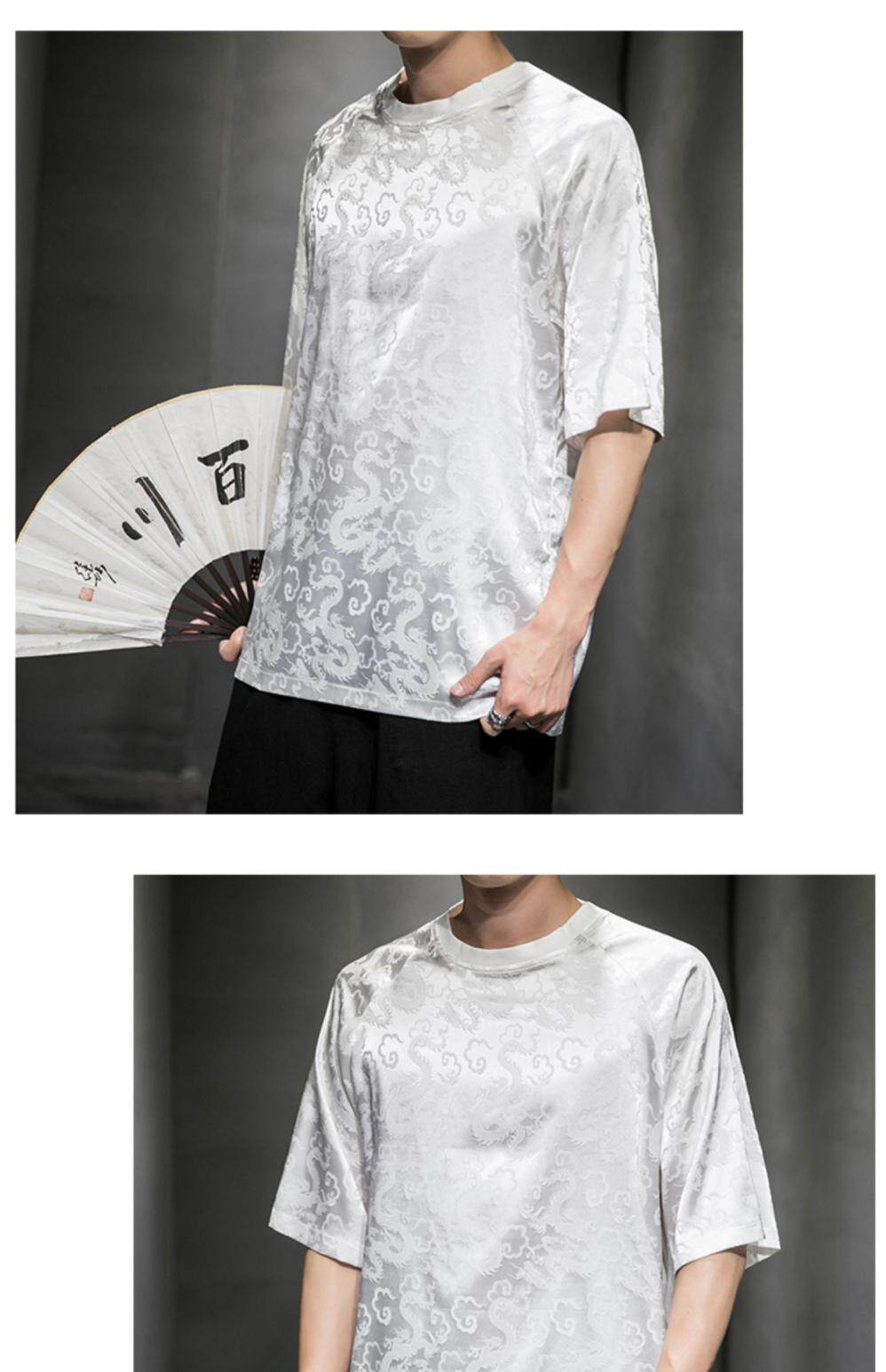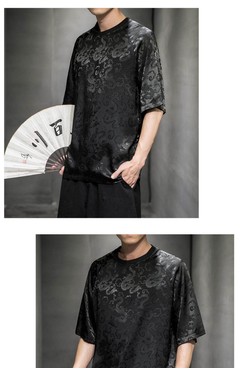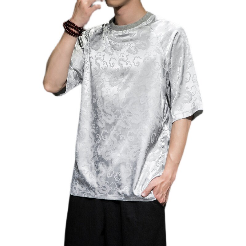 Этническая летняя футболка с коротким рукавом с круглым воротником, китайский стиль