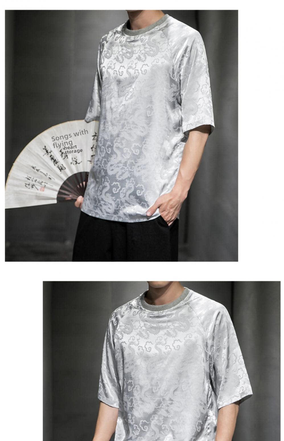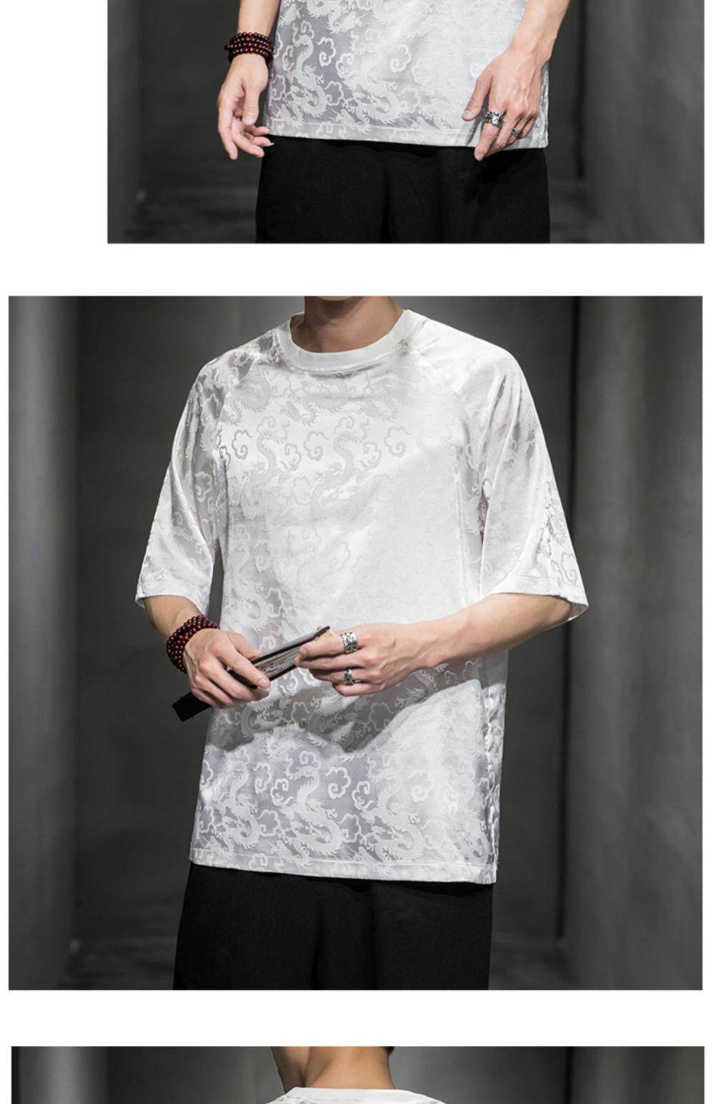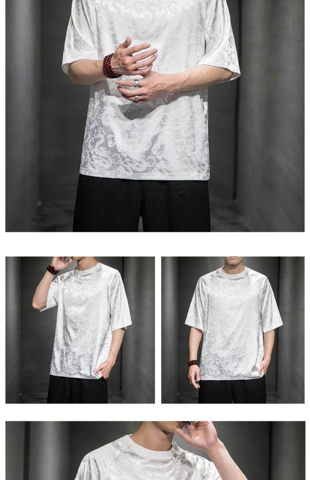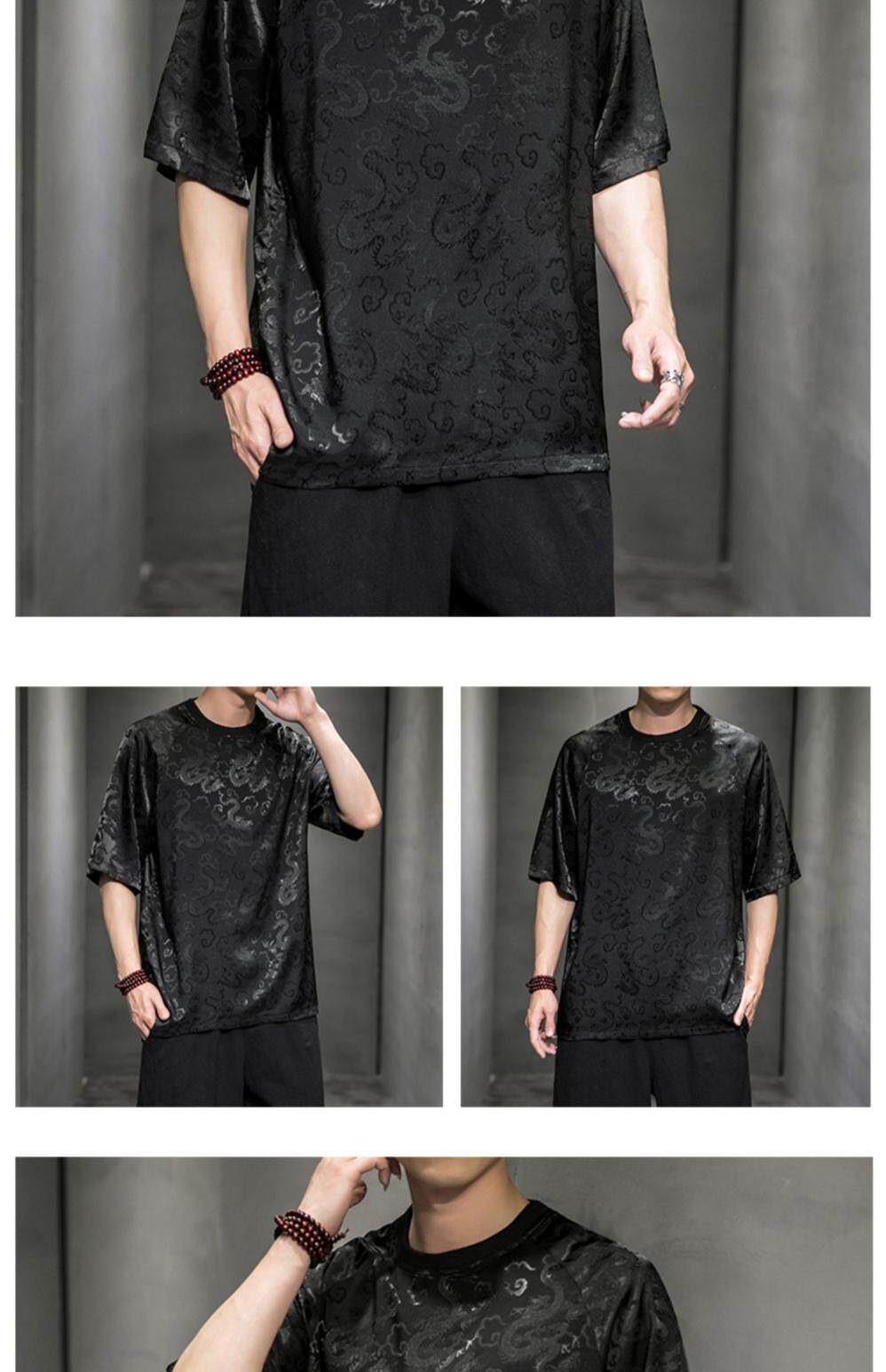 Этническая летняя футболка с коротким рукавом с круглым воротником, китайский стиль
