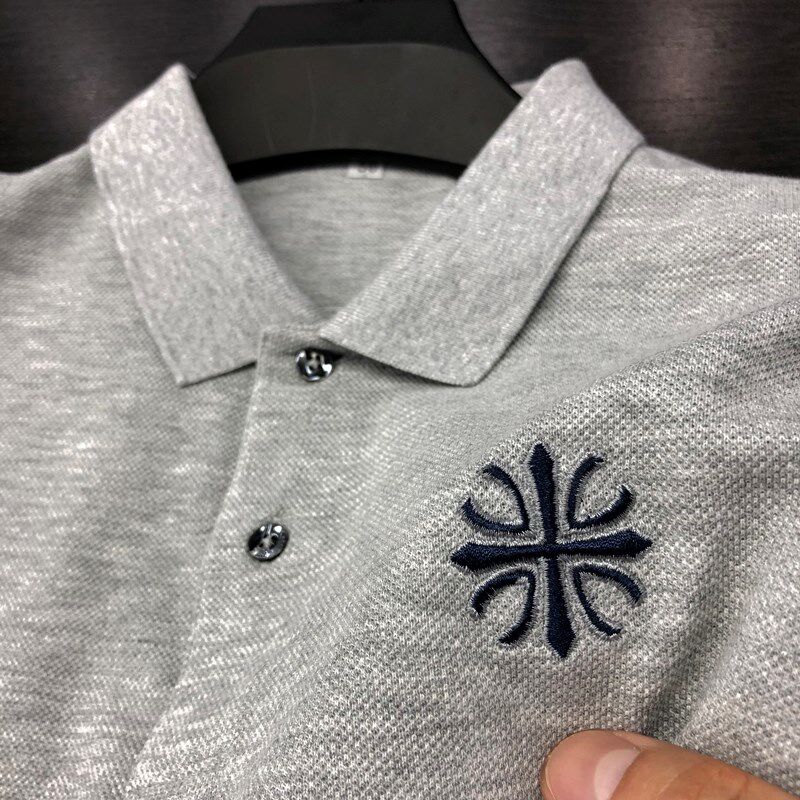 Мужская хлопковая летняя футболка с коротким рукавом, футболка polo, тонкая летняя одежда, для мужчины среднего возраста, высокий воротник, оверсайз