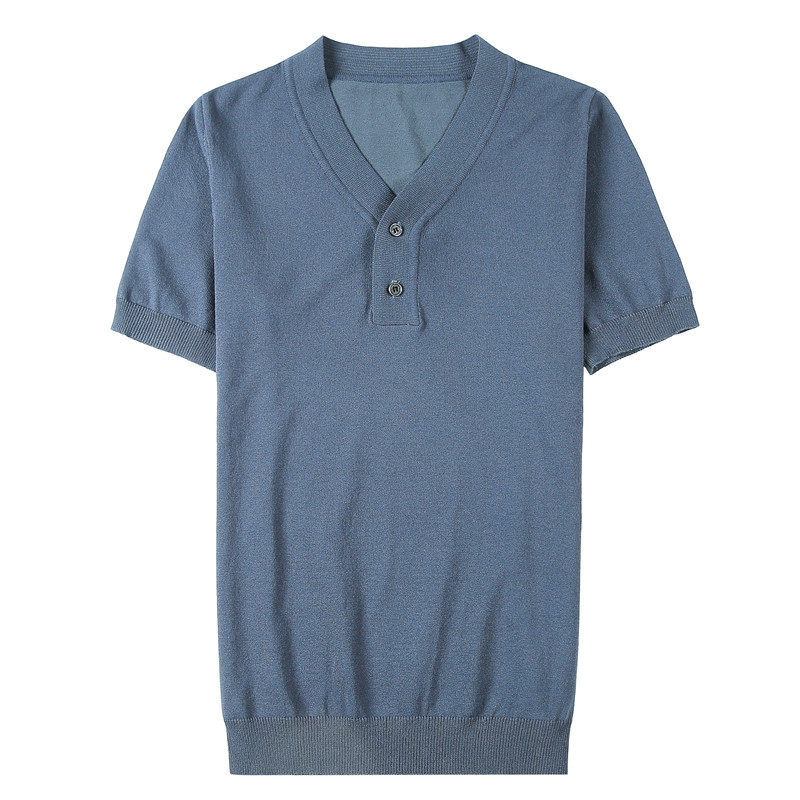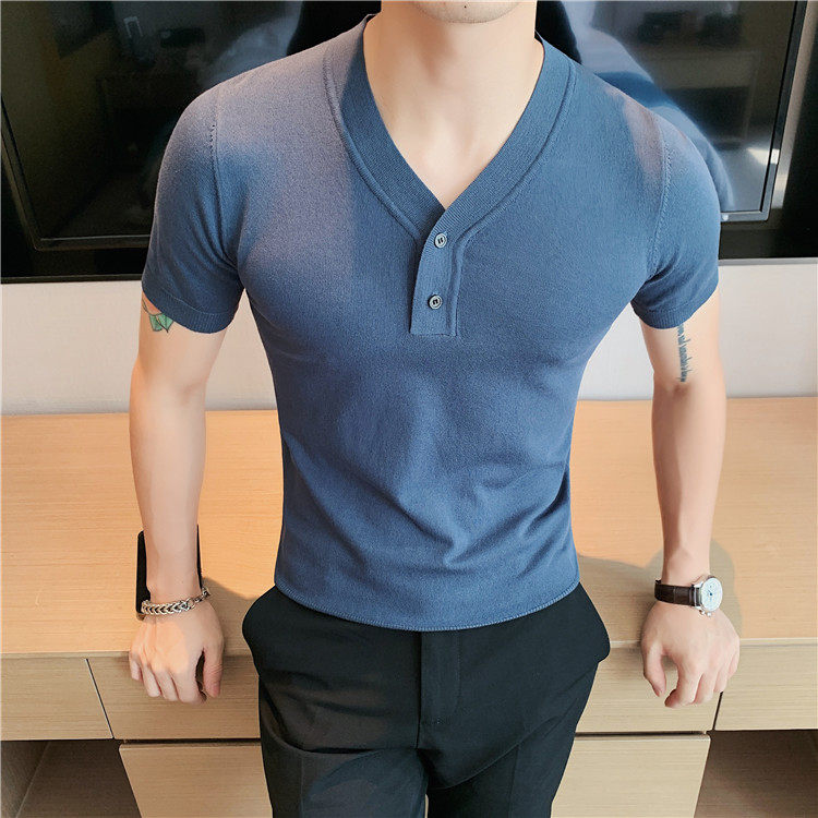 Шелковая летняя тонкая футболка с коротким рукавом, трендовый элитный трикотажный универсальный ростомер для отдыха, V-образный вырез, облегающий крой