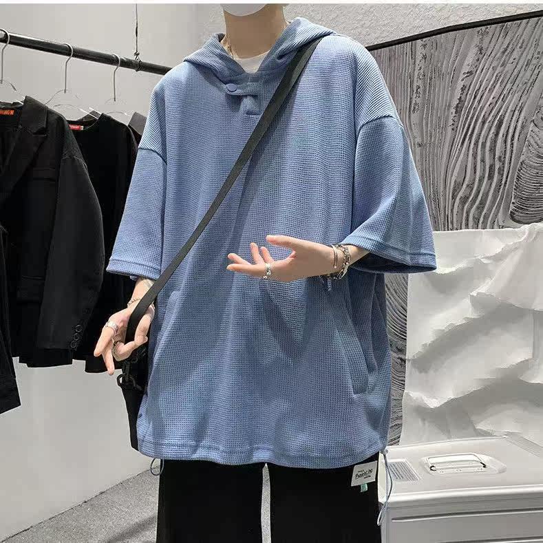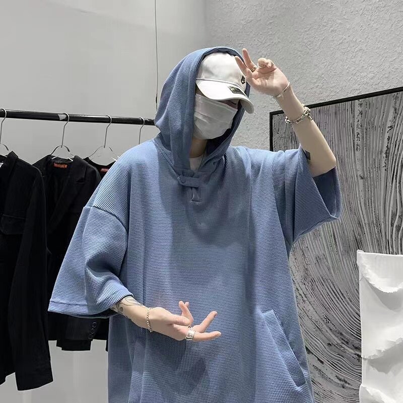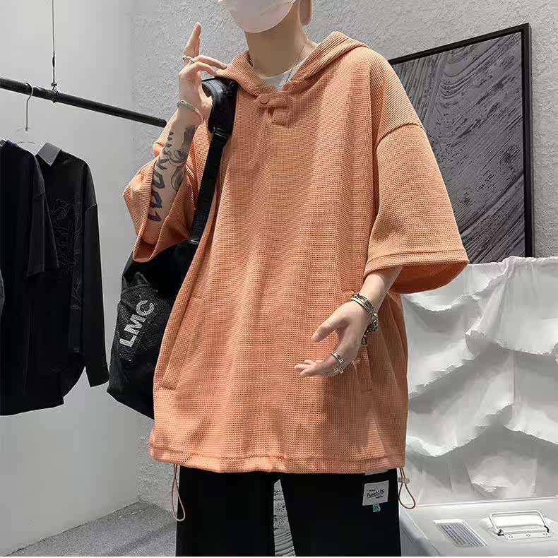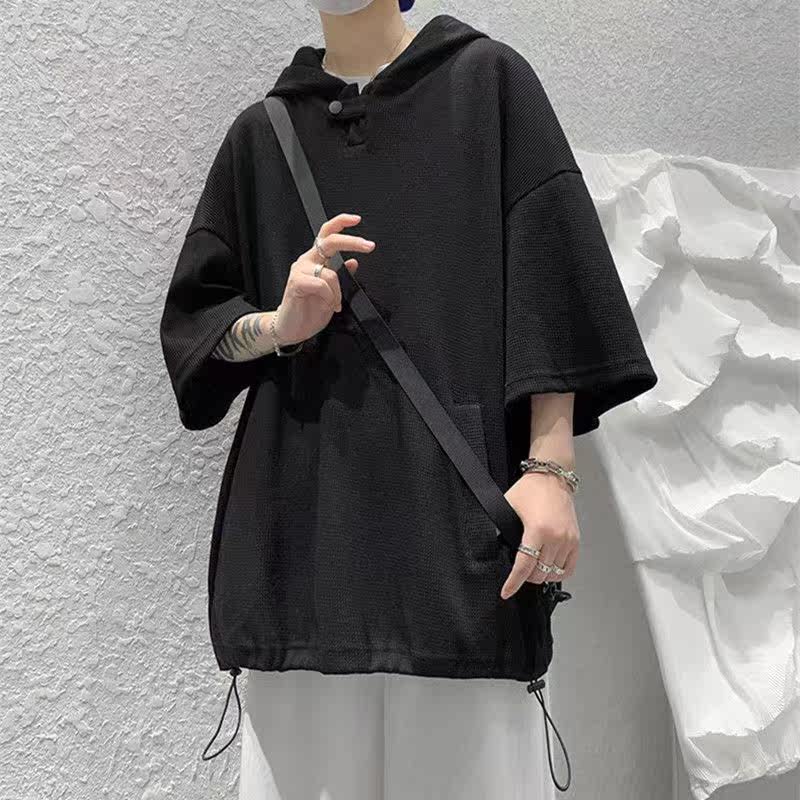 Твердая мужская толстовка с коротким рукавом летняя капюшона уличная одежда