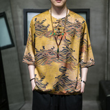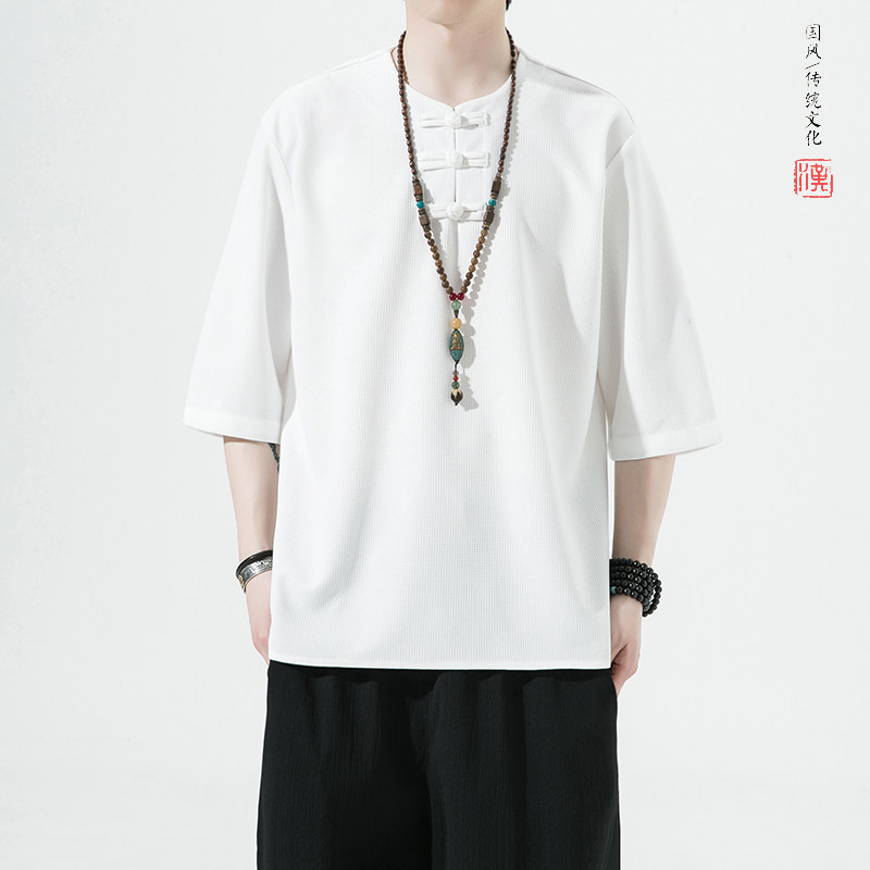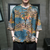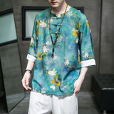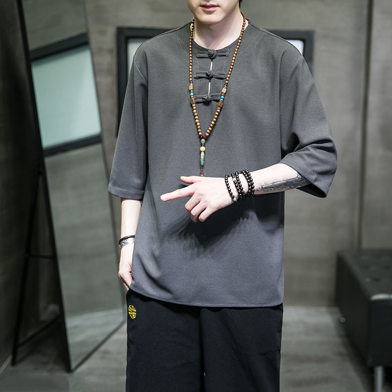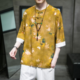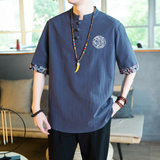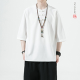Летняя ретро футболка с коротким рукавом, китайский стиль, большой размер