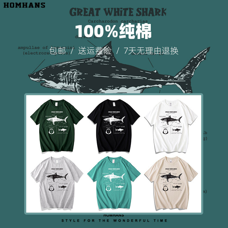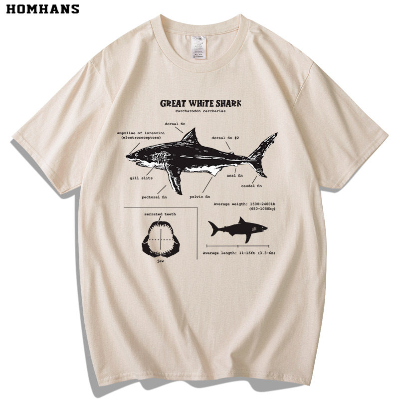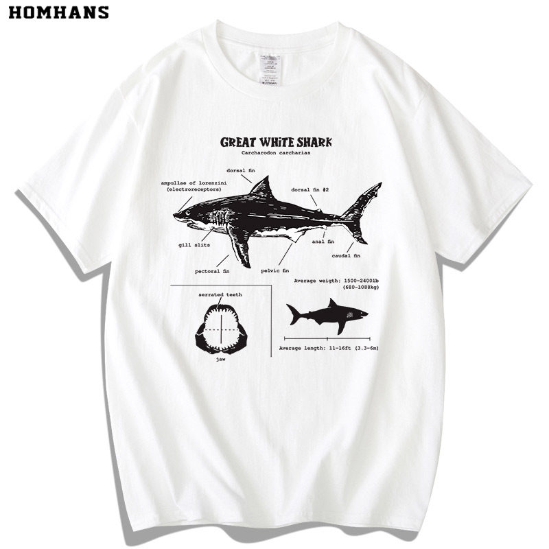 Футболка, большая белая акула, короткий рукав