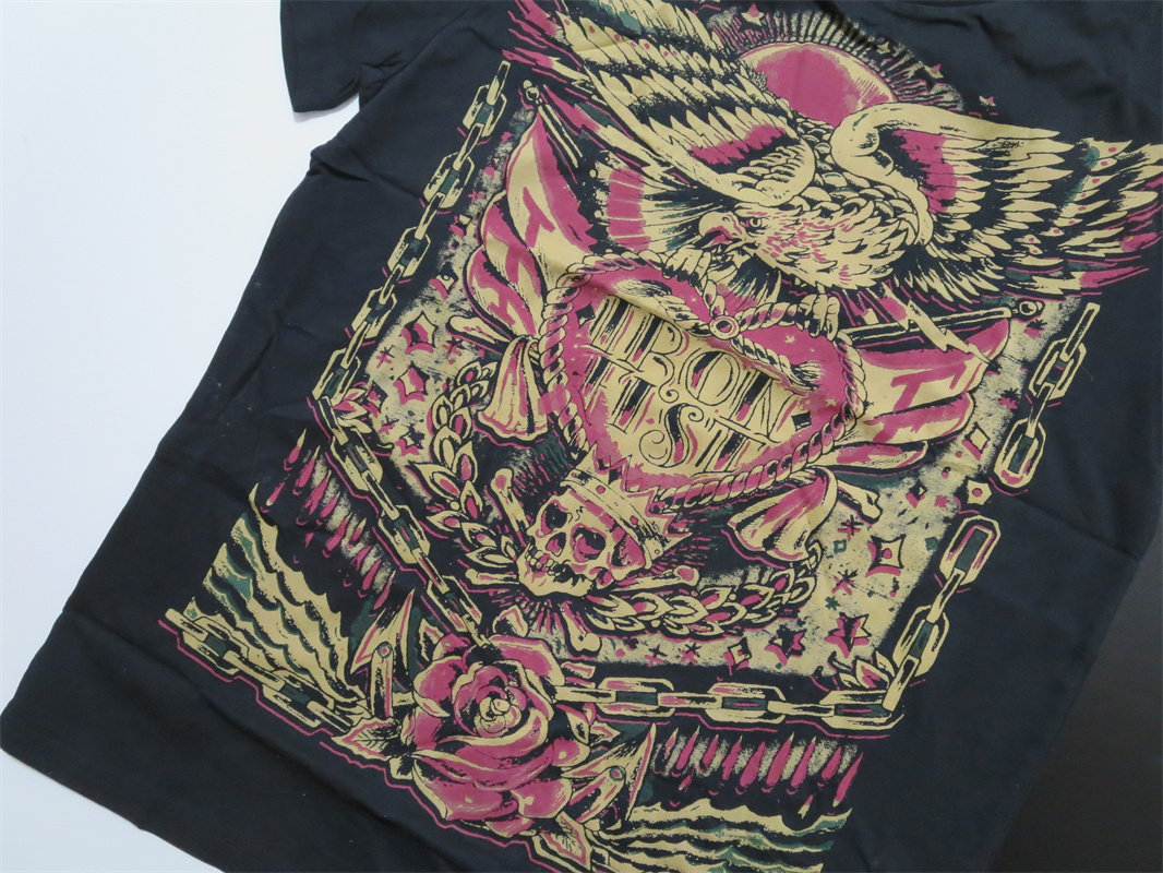 Металлическая тонкая футболка, в американском стиле, в стиле панк, короткий рукав, облегающий крой