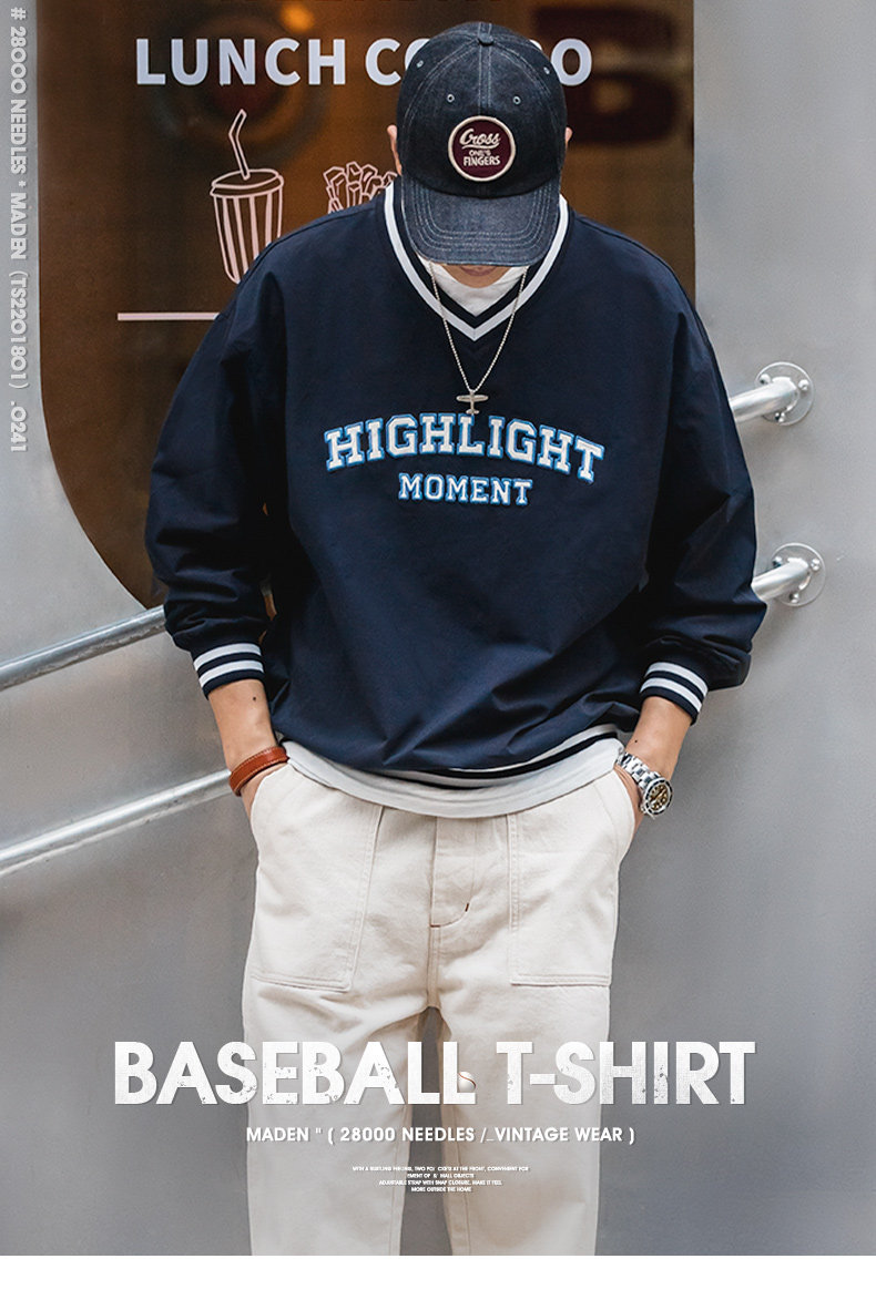 Бейсбольная спортивная униформа, форма, мужской спортивный весенний лонгслив, в американском стиле, V-образный вырез