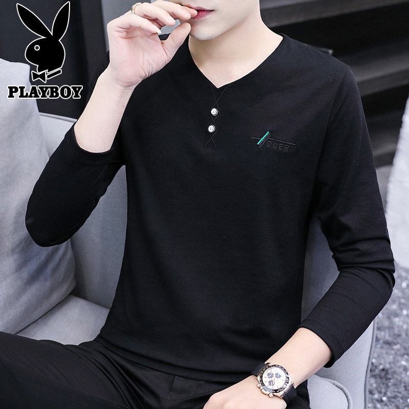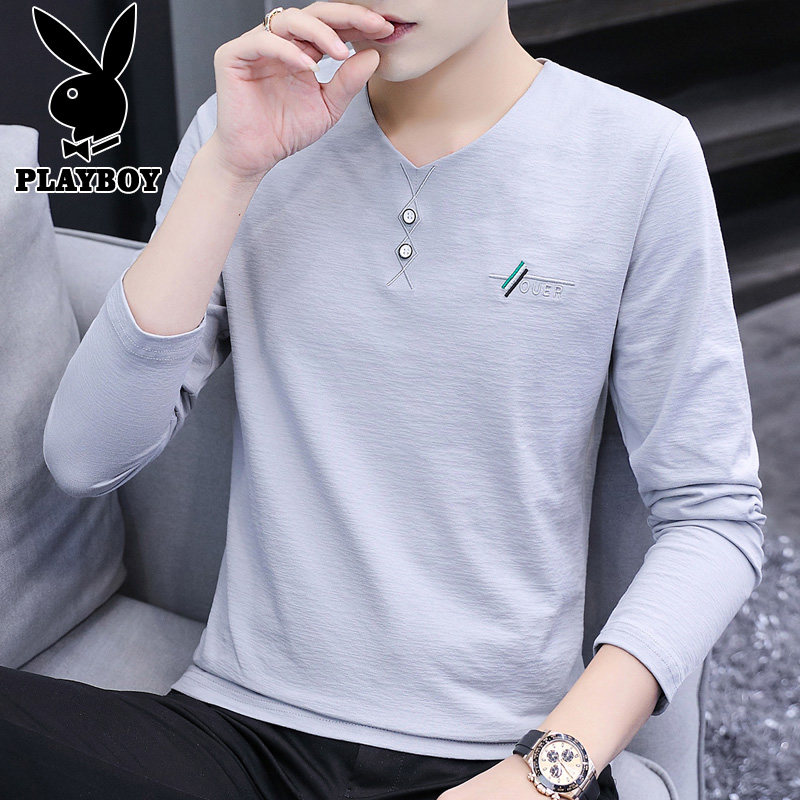 Playboy, мужской белый осенний трендовый базовый приятный телу лонгслив, облегающий крой, V-образный вырез