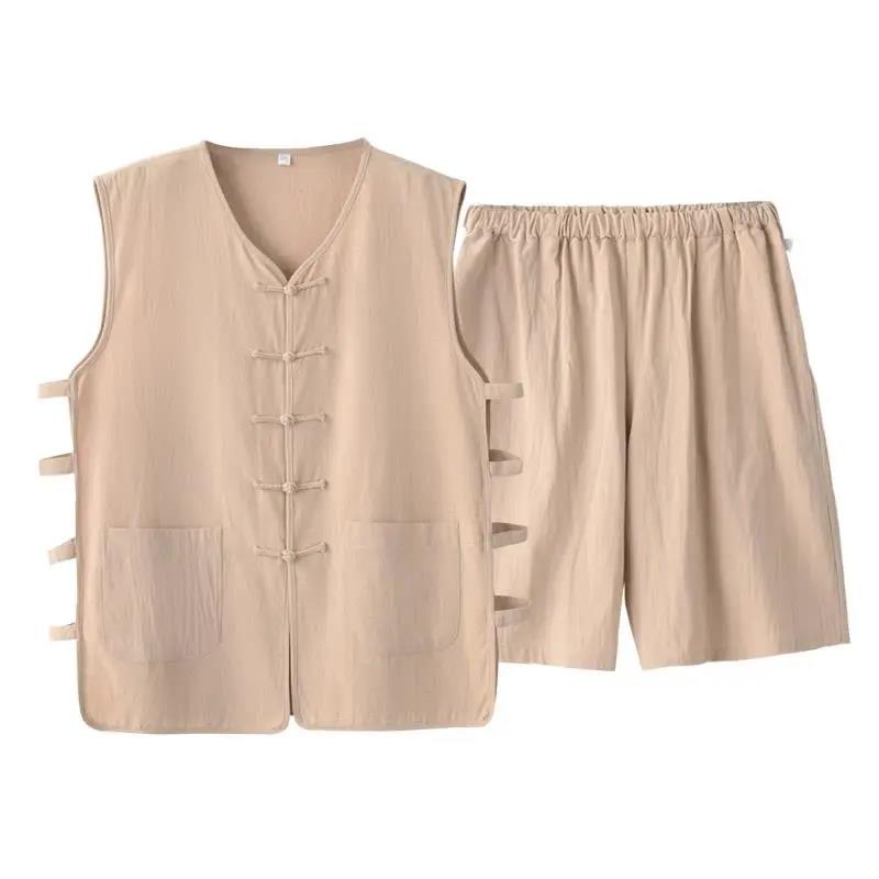 Летний жилет, комплект для пожилых людей, из хлопка и льна, китайский стиль