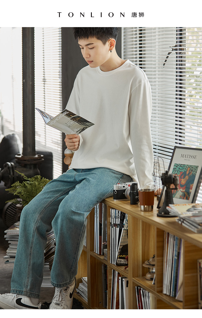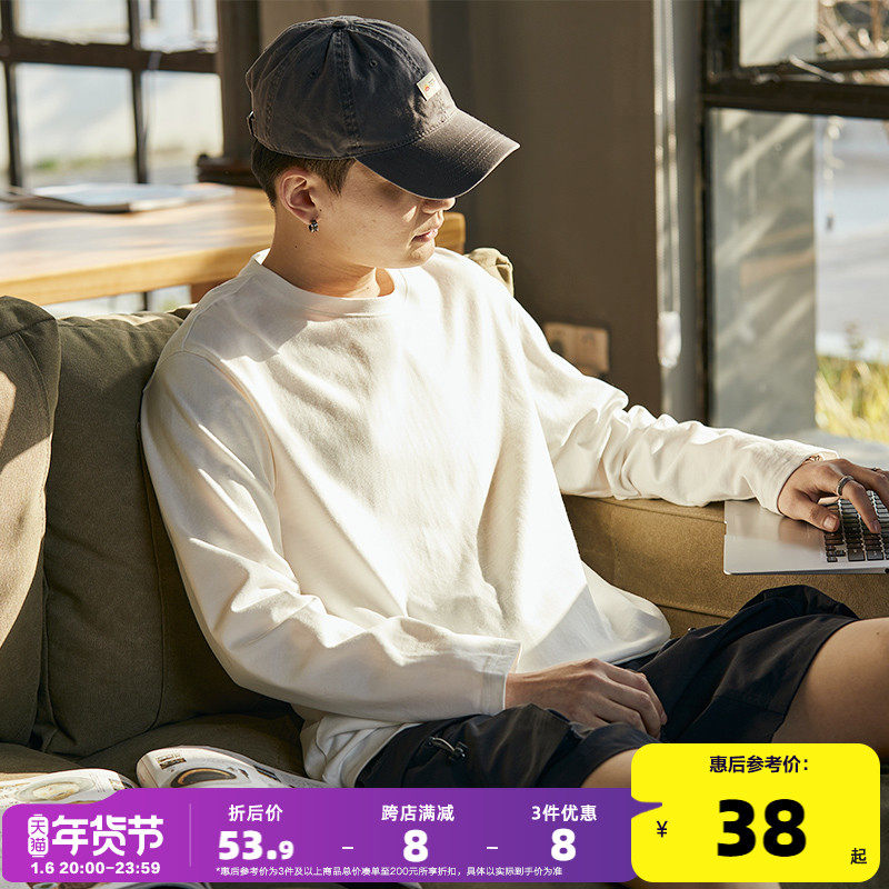 Tide, осенний мужской трендовый белый базовый приятный телу лонгслив с круглым воротником, модель весна/осень 2024 года