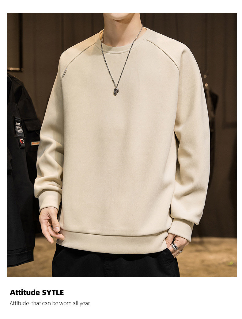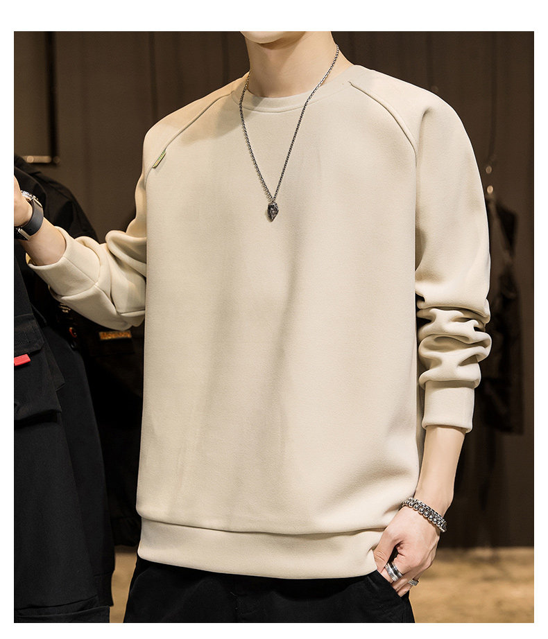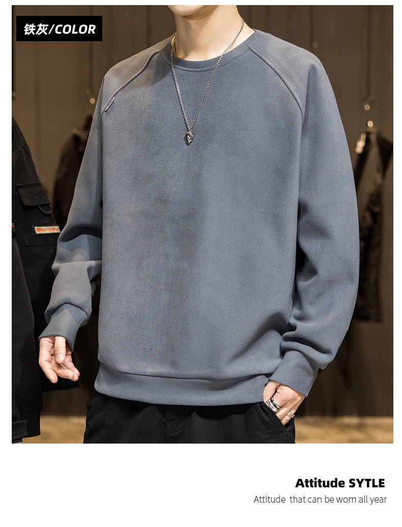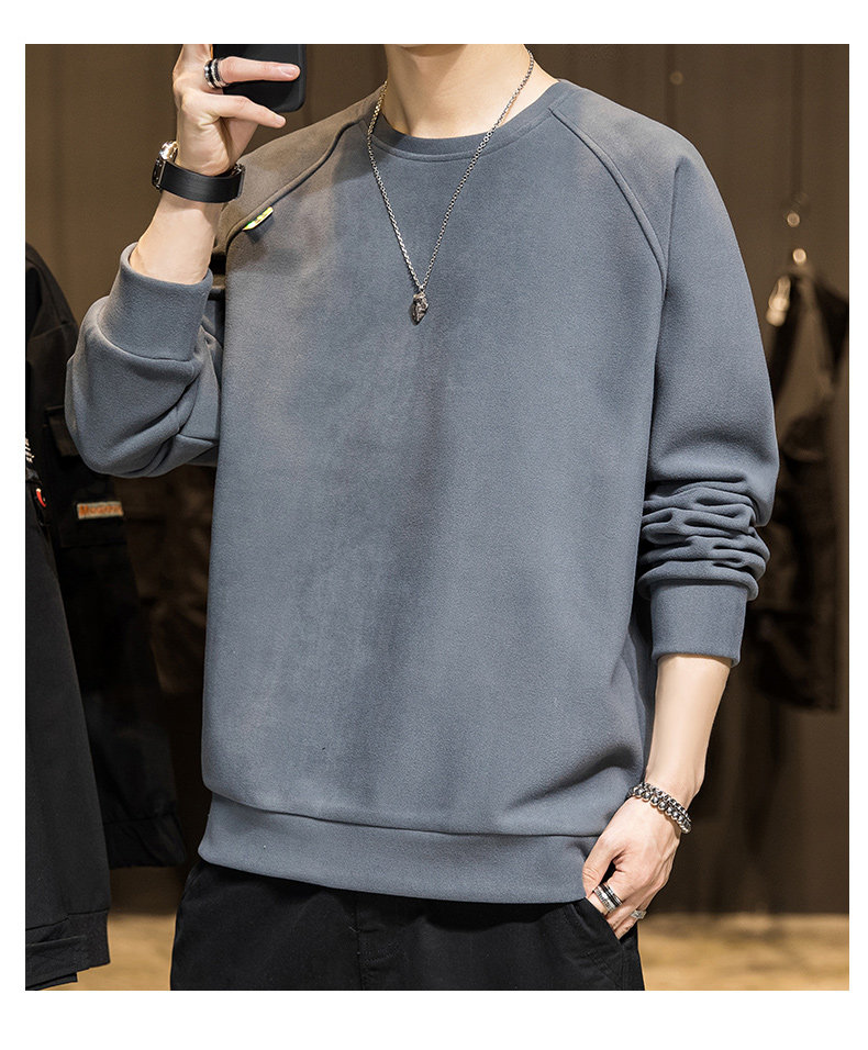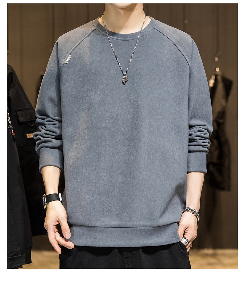 Мужской демисезонный осенний лонгслив, флисовая бархатная базовая приятная телу толстовка с круглым воротником