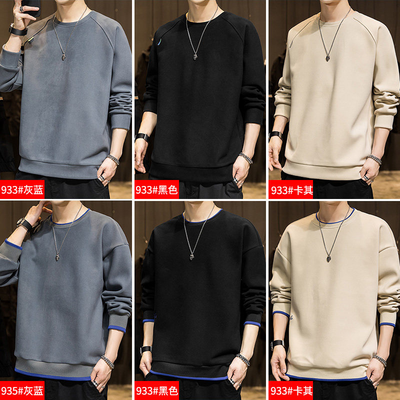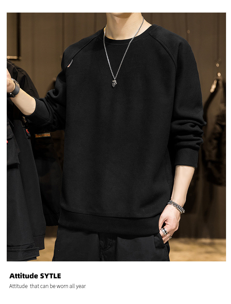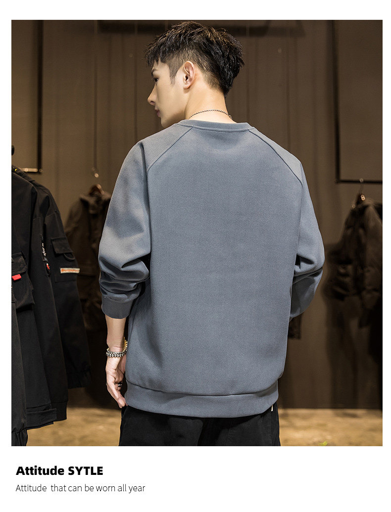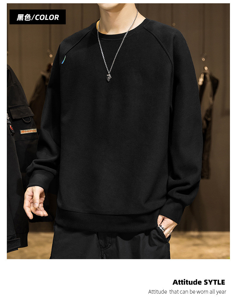 Мужской демисезонный осенний лонгслив, флисовая бархатная базовая приятная телу толстовка с круглым воротником