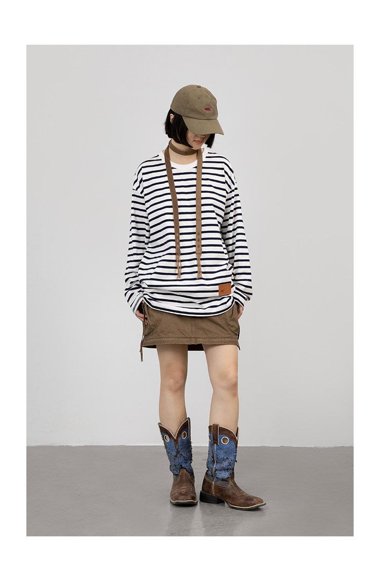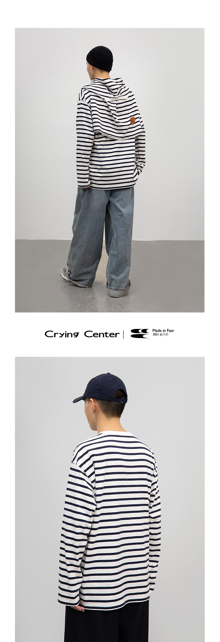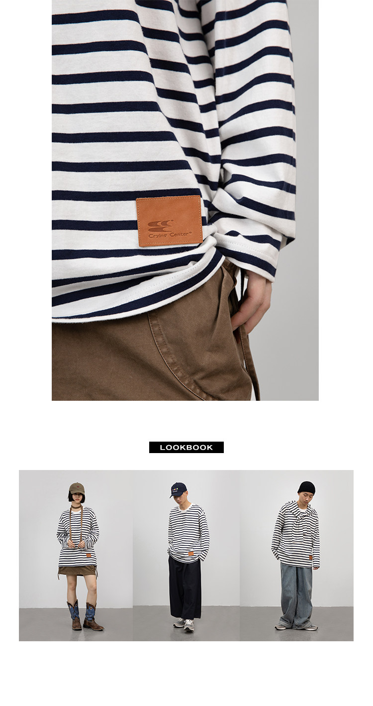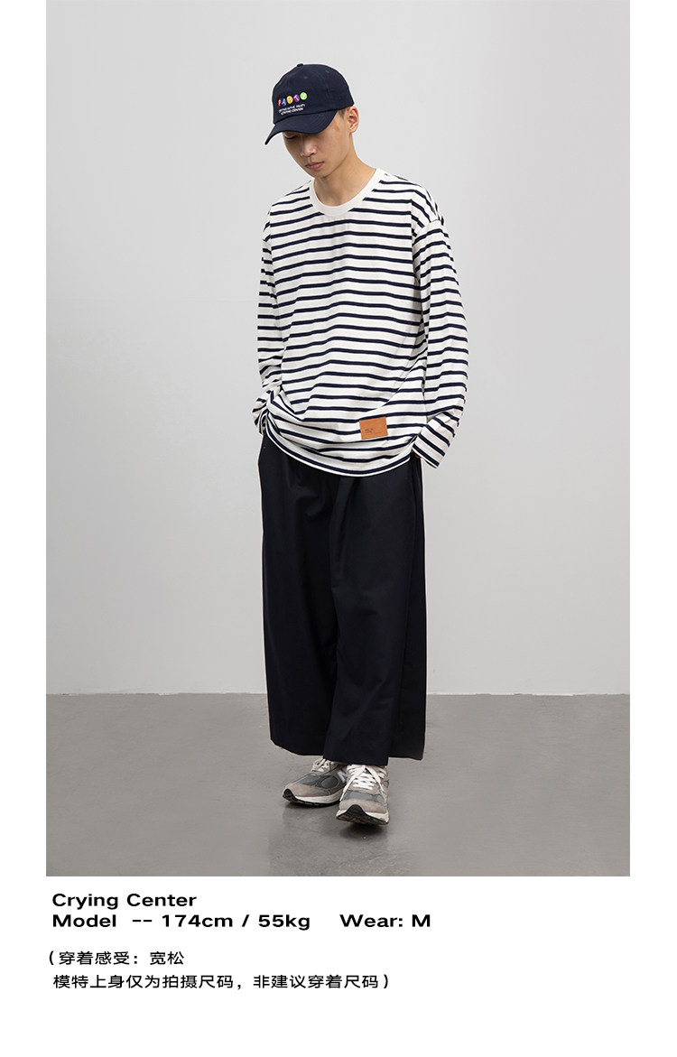 CryingCenter Классический морской соул полосатый пол с длинным рукавом свободный t -манацкий центр