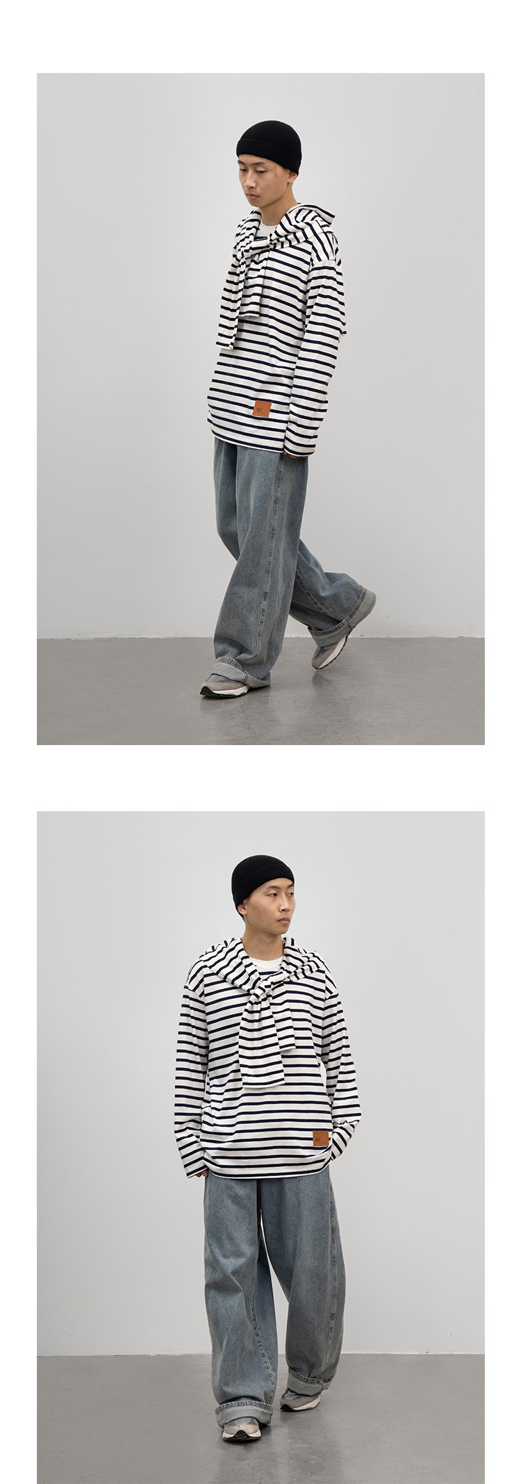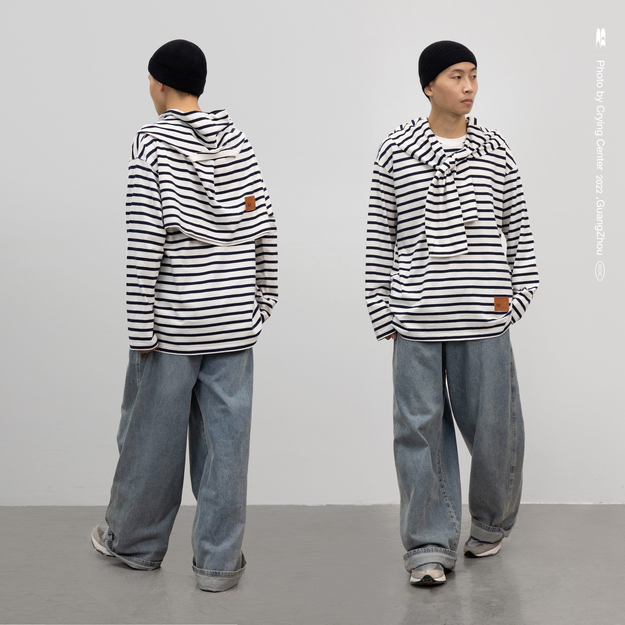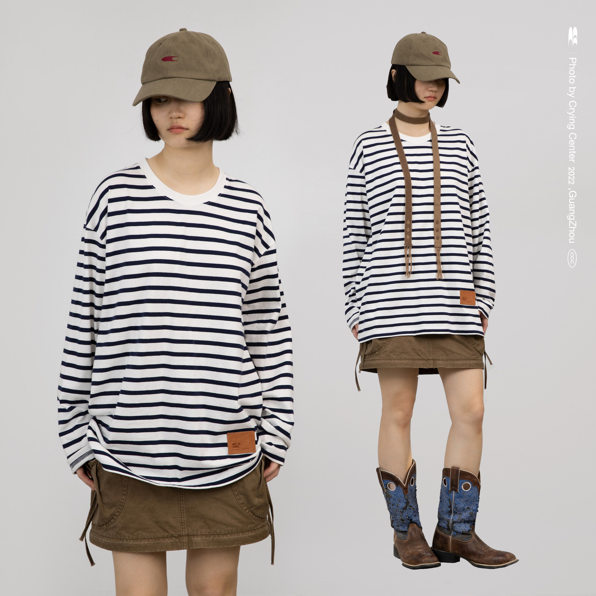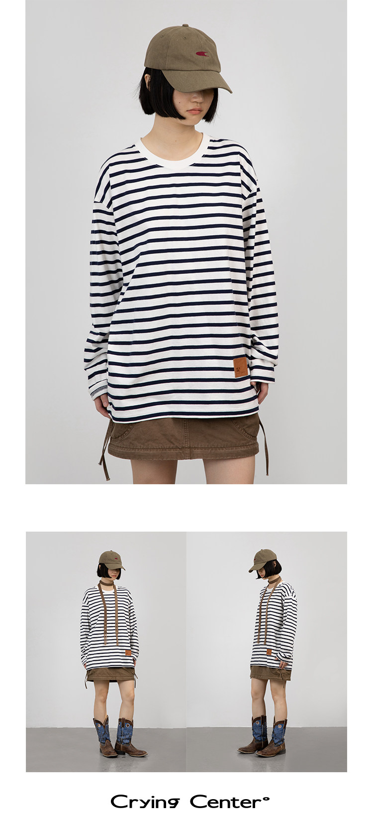 CryingCenter Классический морской соул полосатый пол с длинным рукавом свободный t -манацкий центр