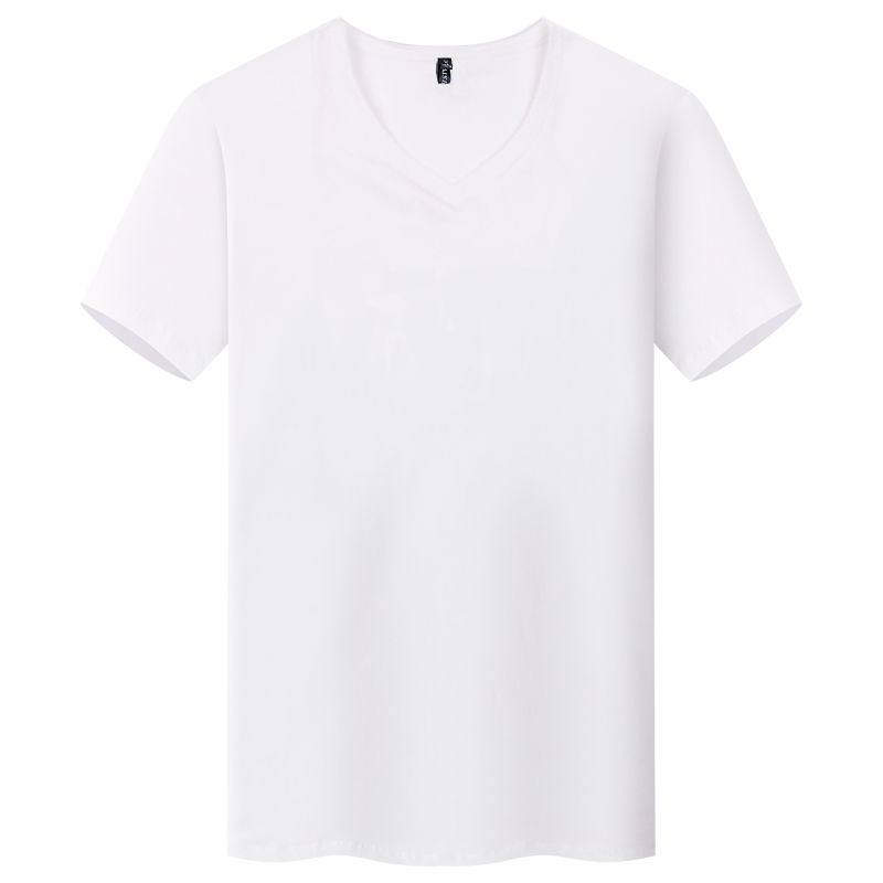 Однотонная летняя белая базовая приятная телу футболка с коротким рукавом, V-образный вырез, в обтяжку, облегающий крой