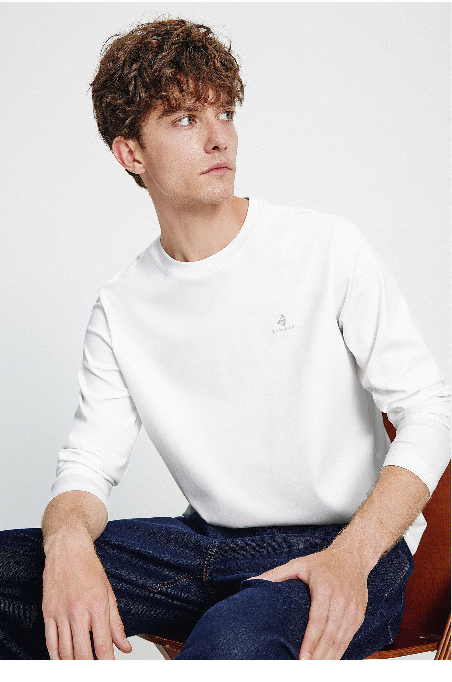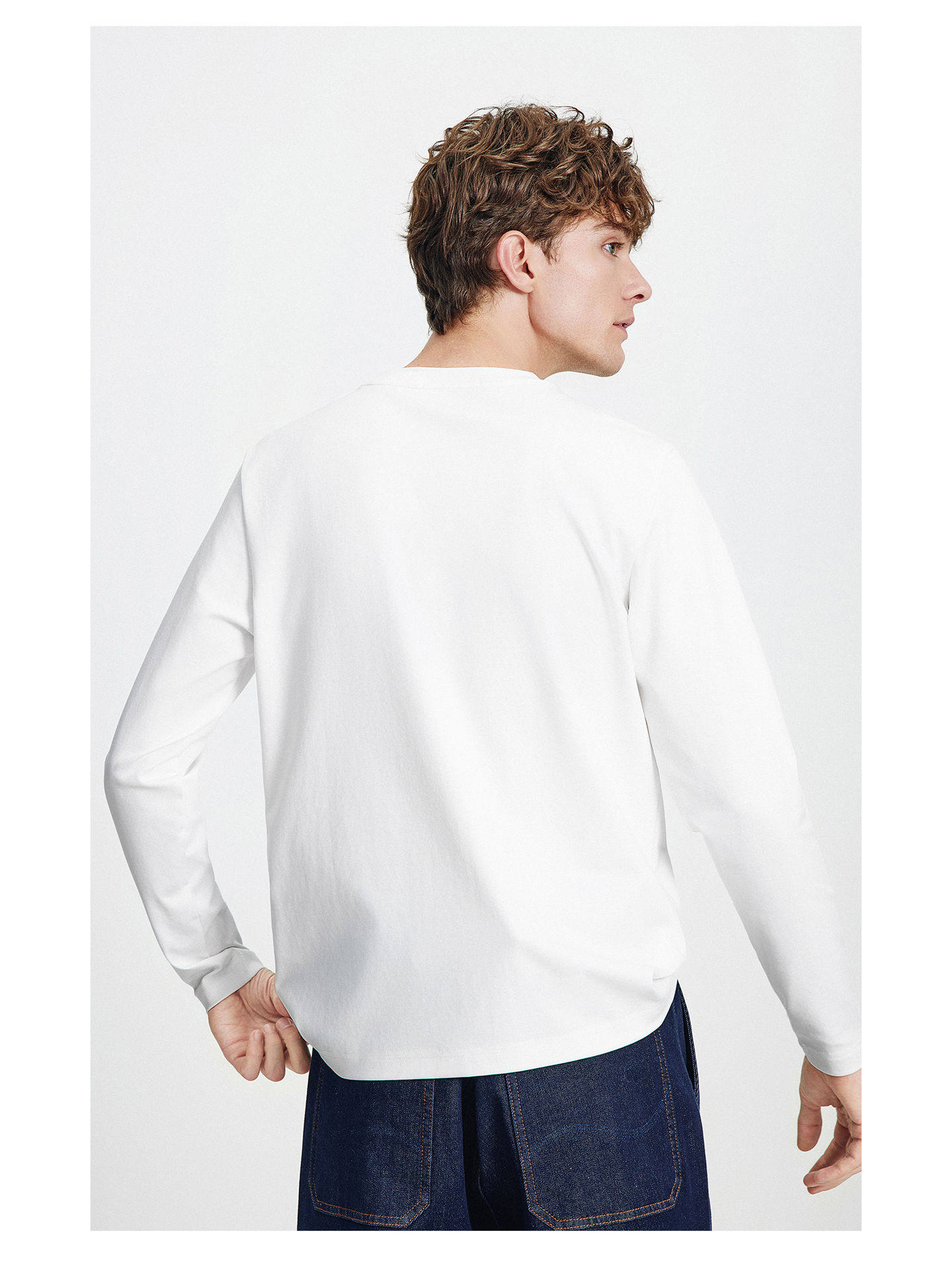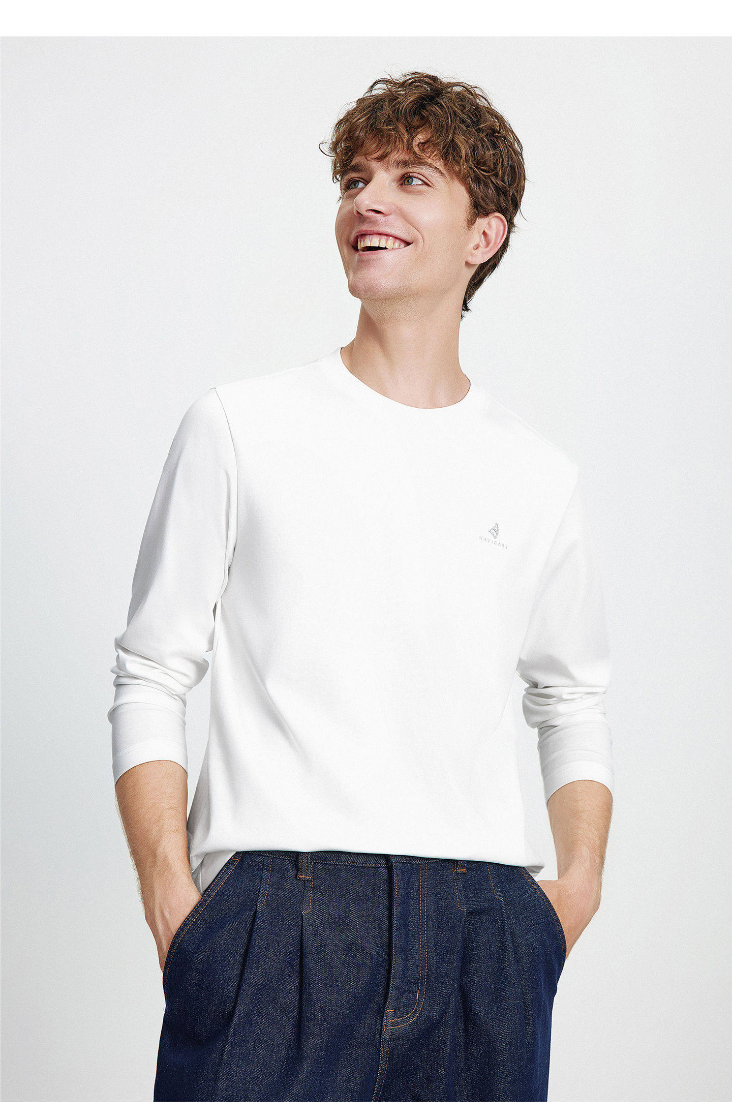 Мужской белый весенний базовый приятный телу лонгслив для отдыха с круглым воротником