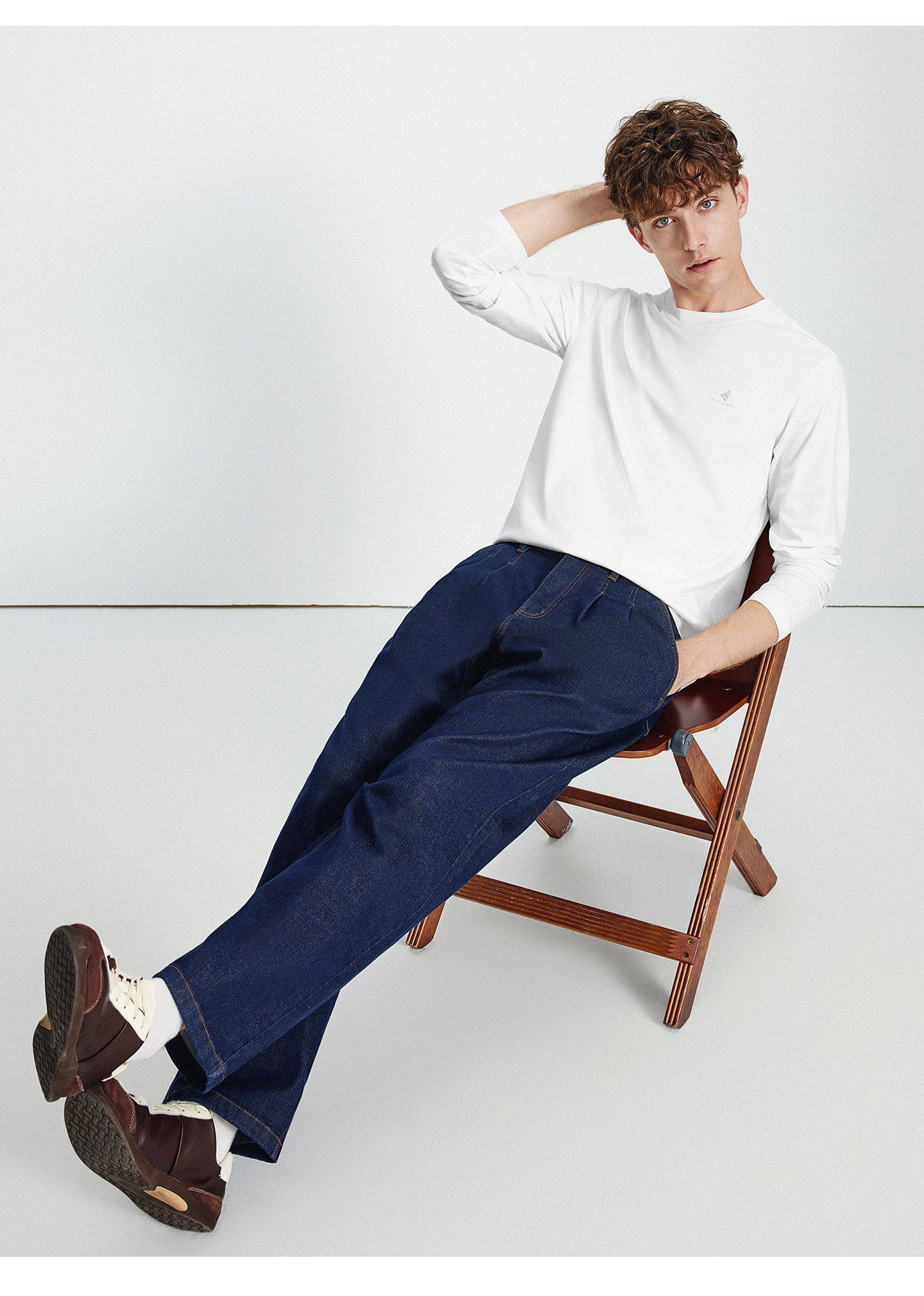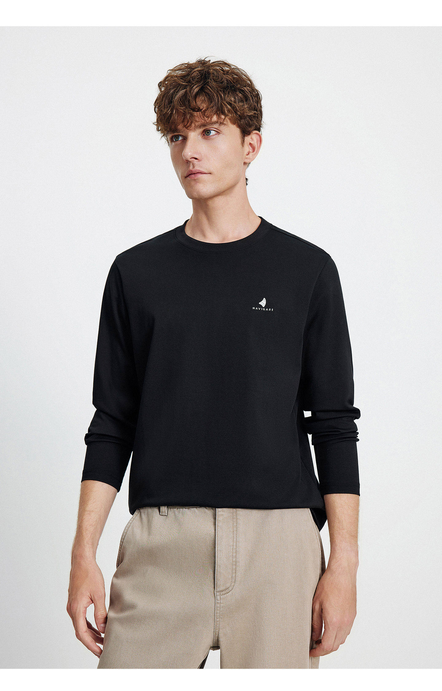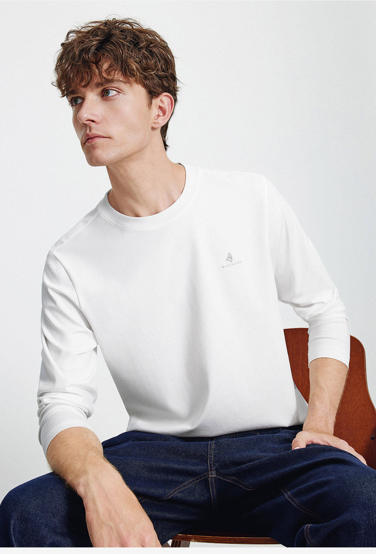 Мужской белый весенний базовый приятный телу лонгслив для отдыха с круглым воротником