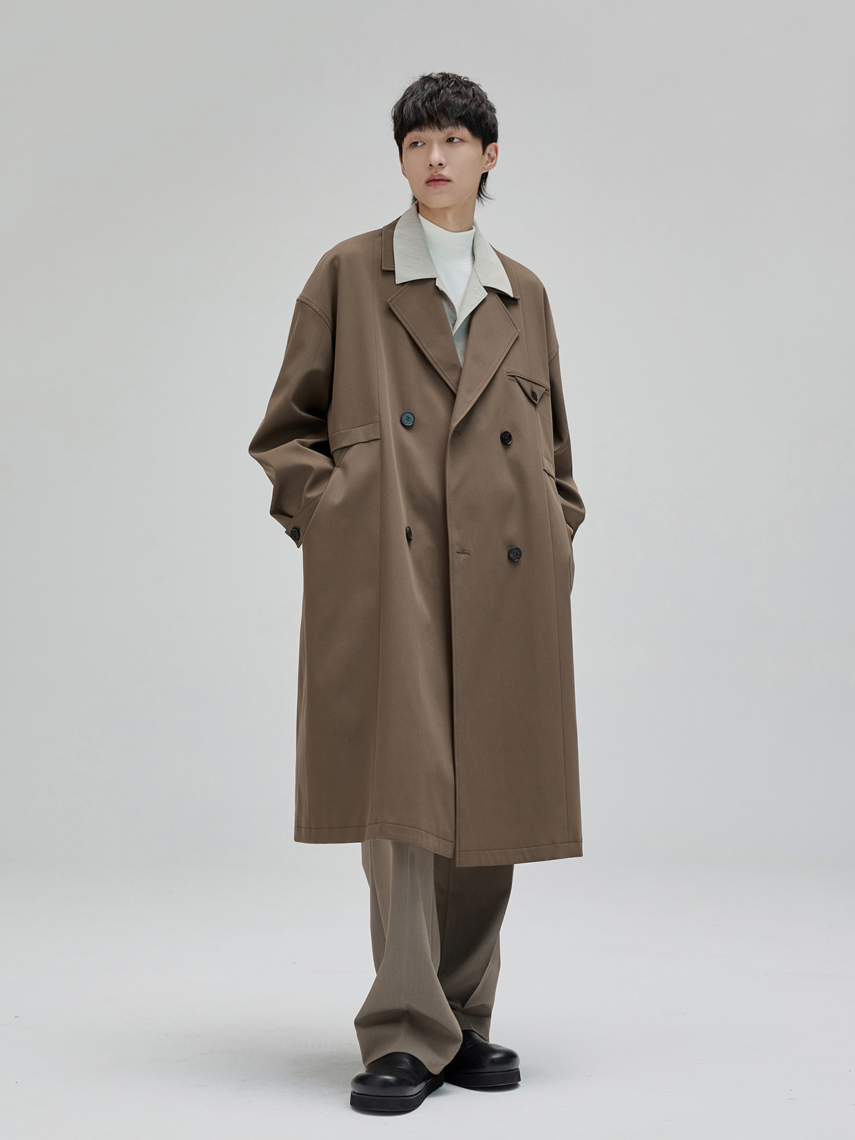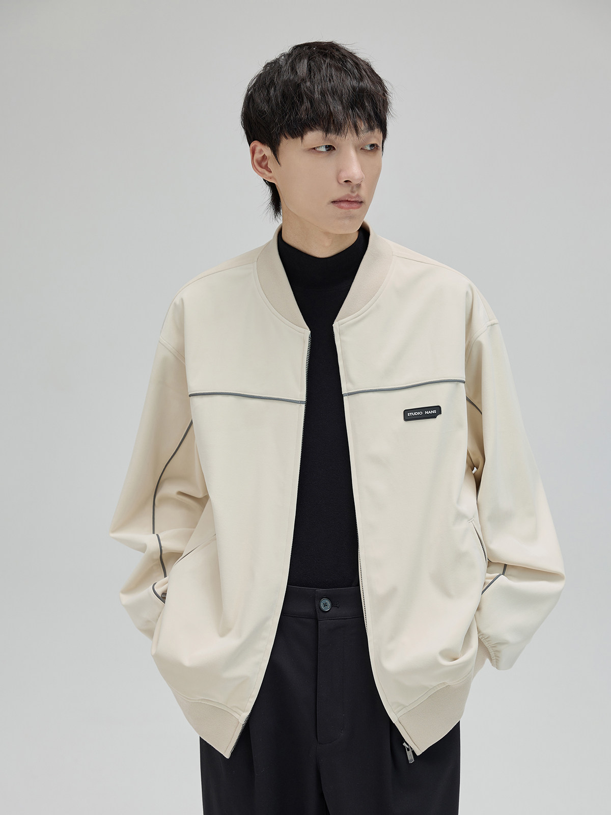 [NANS] Двусторонний теплый бархатный материал из смесового акрилового волокна плотностью 40, с высоким воротником и базовой футболкой с длинными рукавами