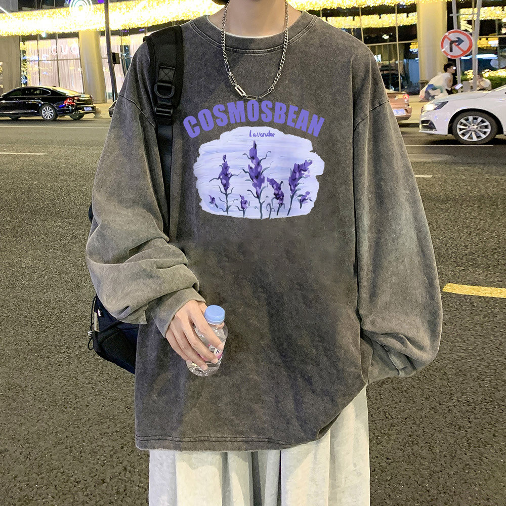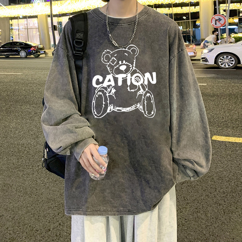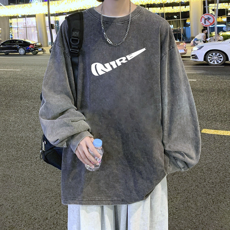 Брендовый базовый приятный телу лонгслив с круглым воротником, в американском стиле, оверсайз