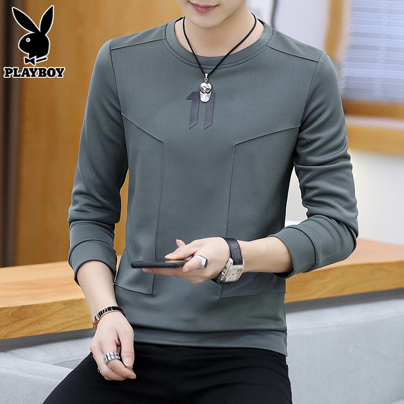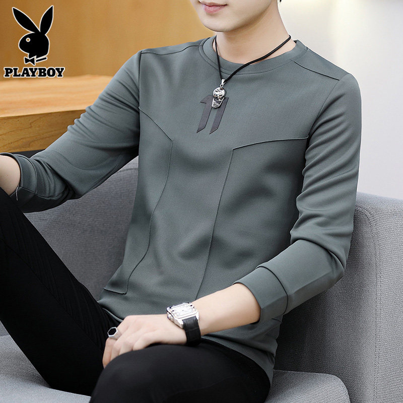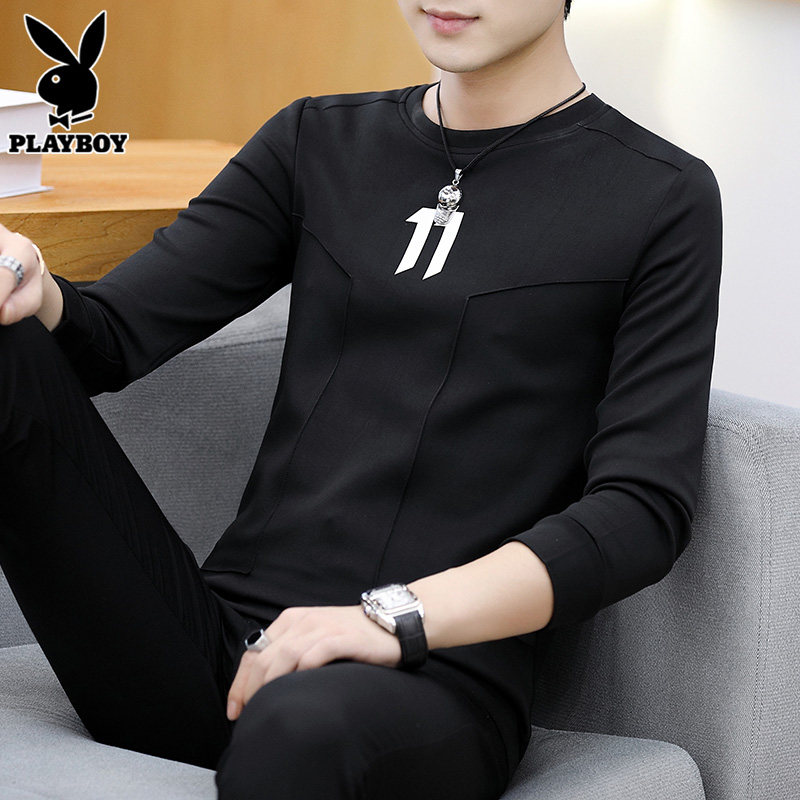 Playboy, мужской осенний демисезонный лонгслив, приталенная хлопковая толстовка