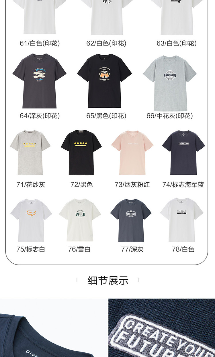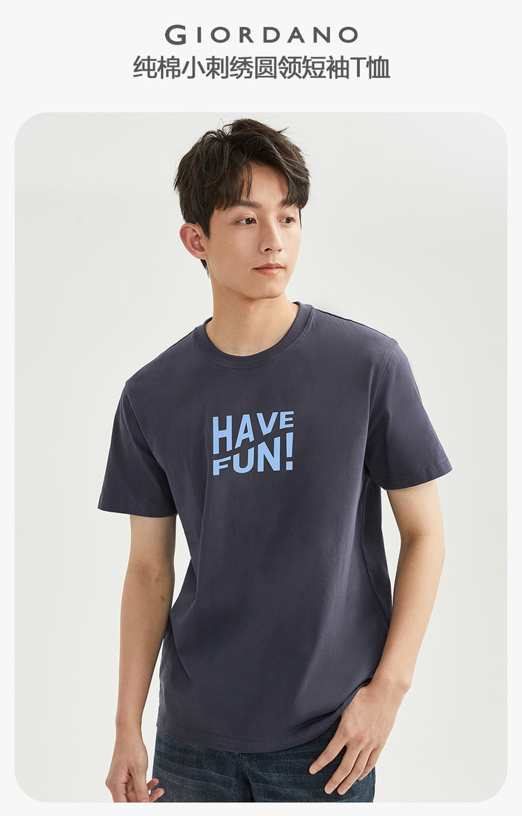 Giordano с короткими рукавами, мужская новая вязаная хлопковая футболка с буквенным принтом, повседневный стиль, мужской топ с круглым вырезом 13022203