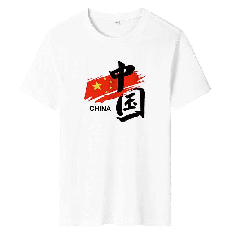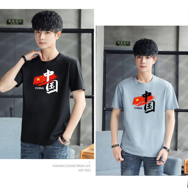 Летняя красная футболка с коротким рукавом для школьников и студентов, свободный крой, китайский стиль, делается под заказ