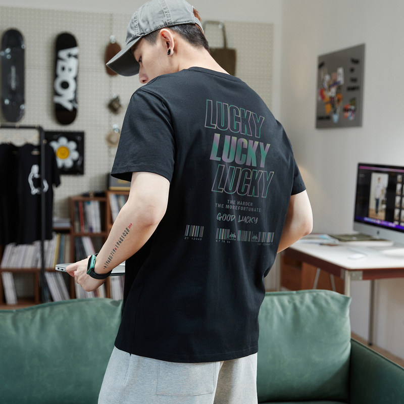 Летняя хлопковая светоотражающая футболка с коротким рукавом с круглым воротником