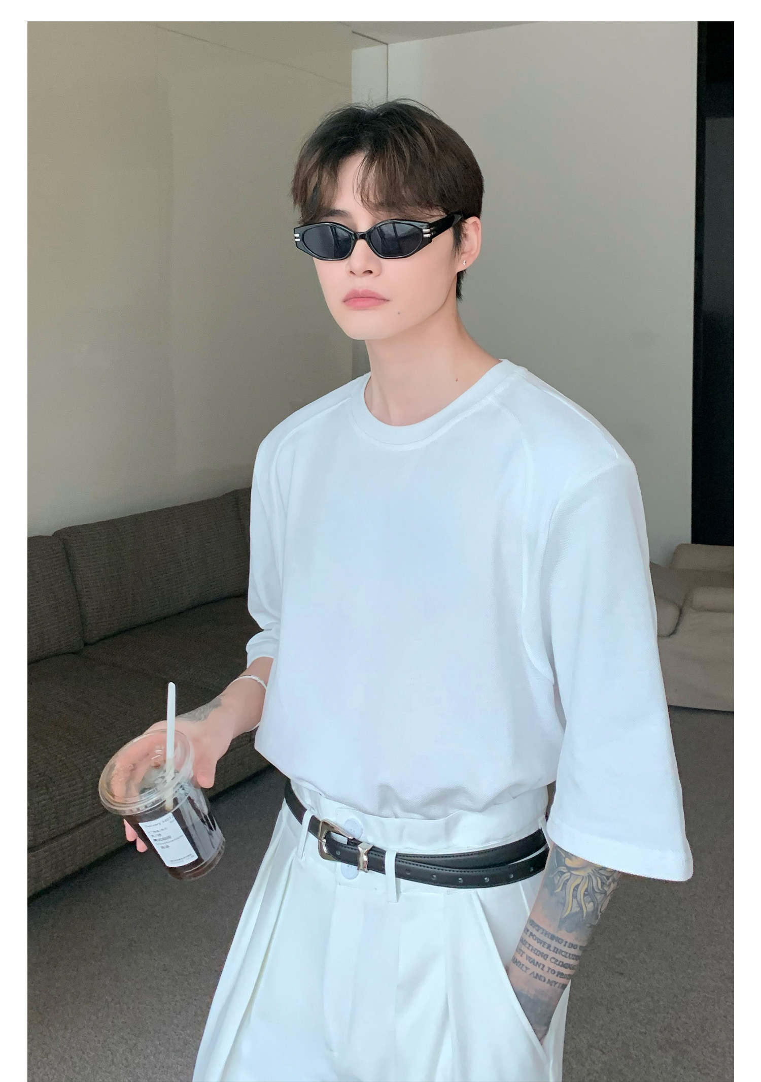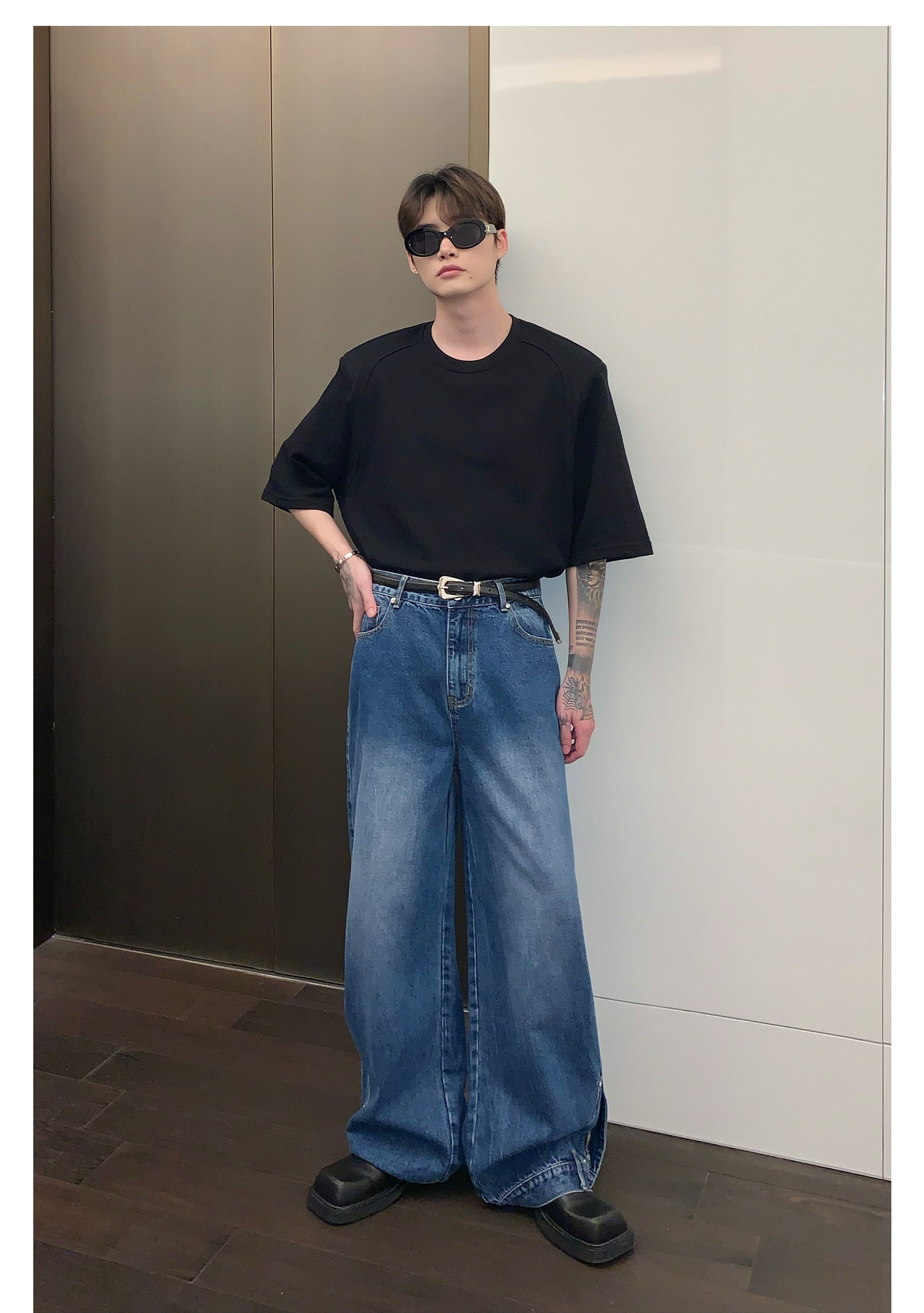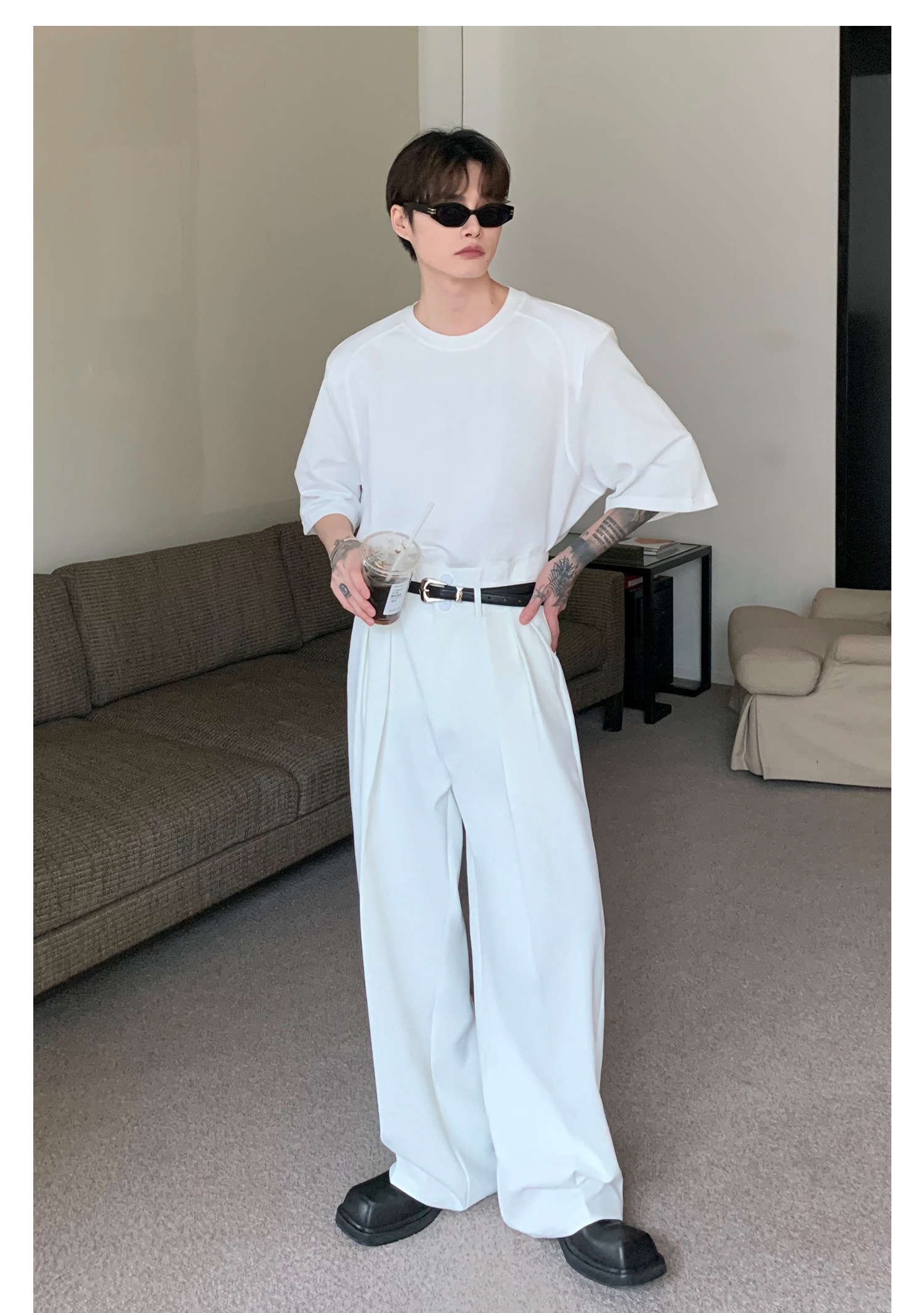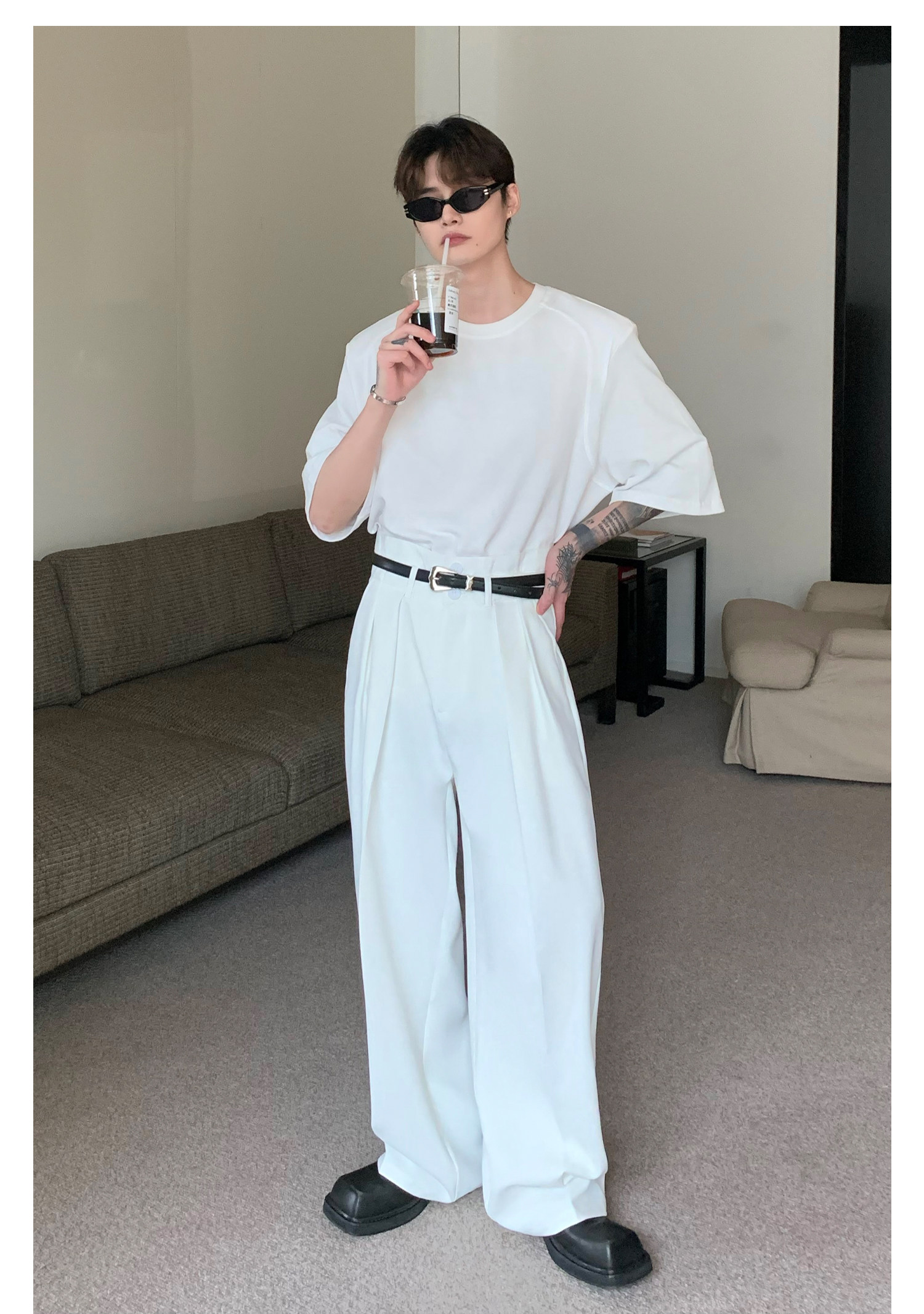 Наплечники, универсальная футболка с коротким рукавом с круглым воротником, в корейском стиле, простой и элегантный дизайн, оверсайз