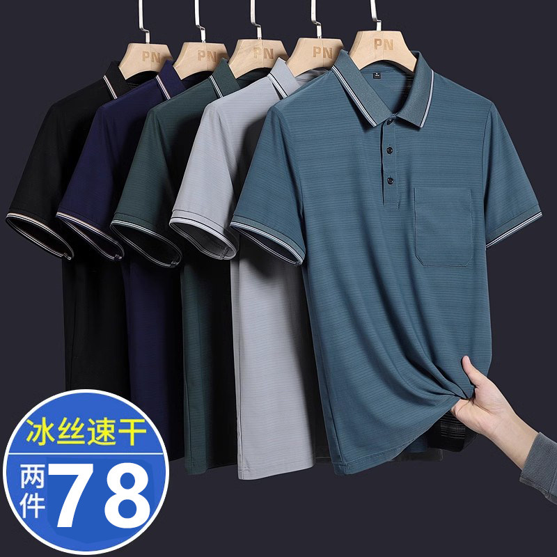Шелковая летняя одежда, футболка с коротким рукавом, футболка polo, для среднего возраста