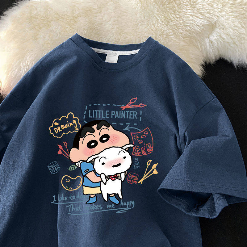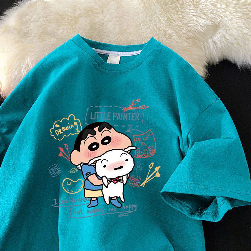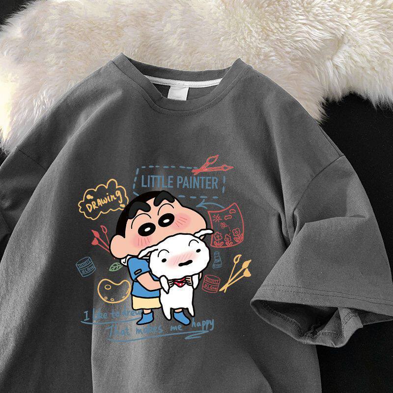 Хлопковая мультяшная футболка с коротким рукавом, трендовая брендовая парная одежда, короткий рукав, оверсайз, для влюбленных