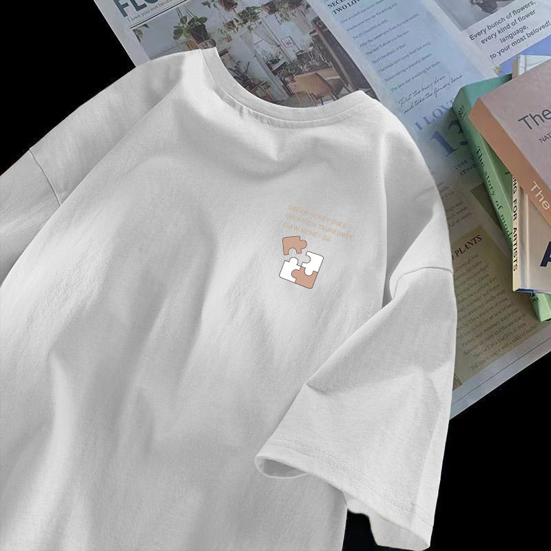 Хлопковая трендовая универсальная брендовая футболка с коротким рукавом для отдыха для влюбленных, оверсайз