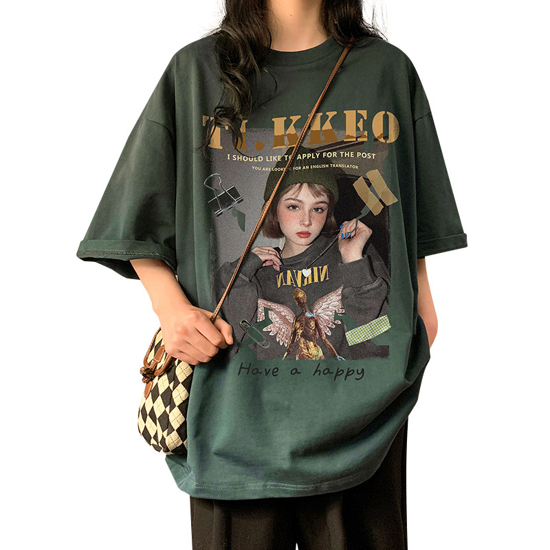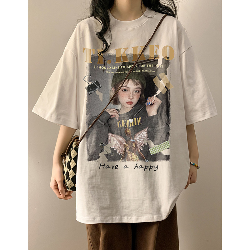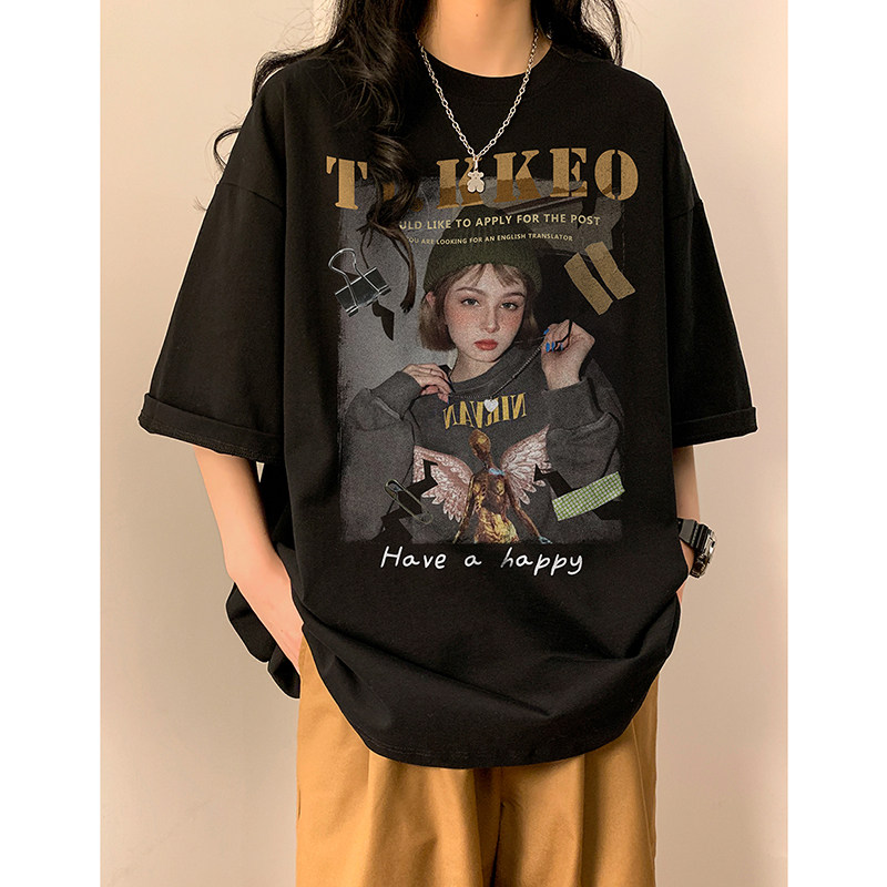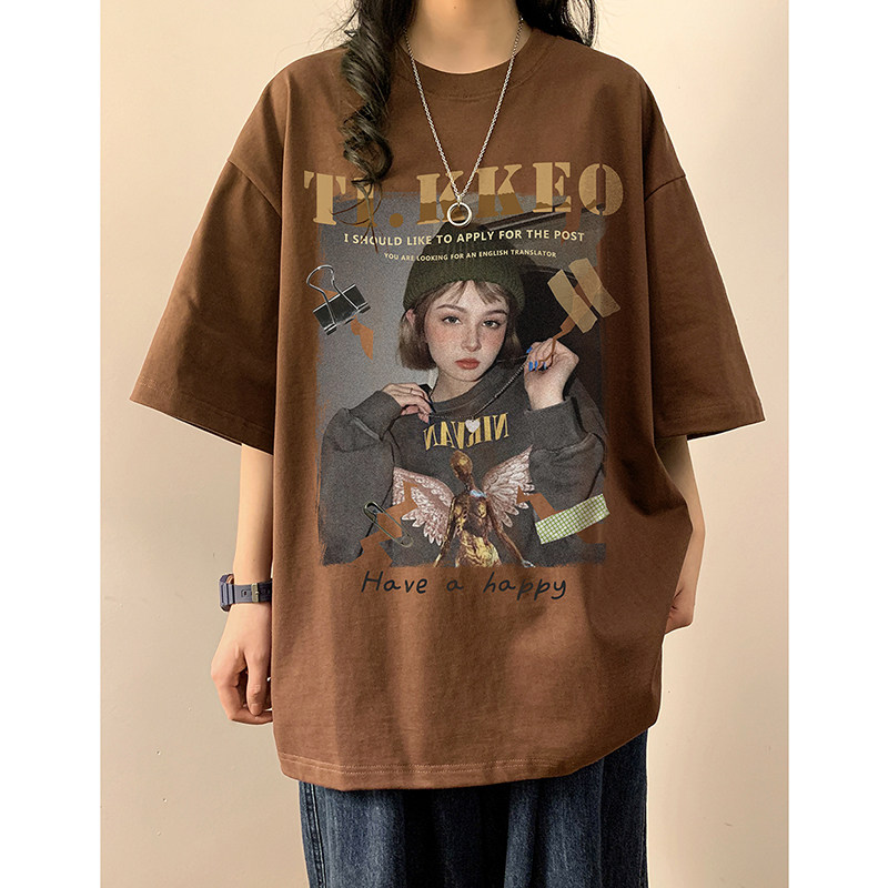 Ретро хлопковая брендовая футболка с коротким рукавом в стиле хип-хоп с круглым воротником, в американском стиле, оверсайз