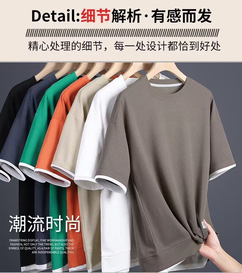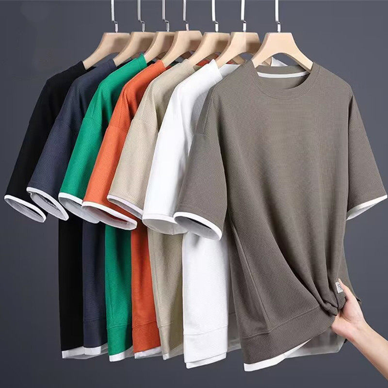 Мужская футболка с коротким рукавом, тонкий комплект, свободный крой, короткий рукав
