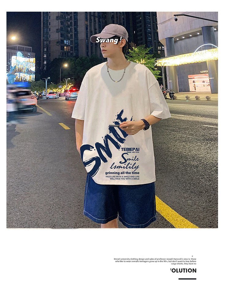 Хлопковая брендовая футболка с коротким рукавом, короткий рукав, оверсайз, в американском стиле