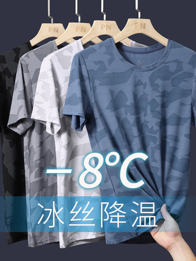 Шелковая быстросохнущая тонкая спортивная футболка с коротким рукавом для отдыха, свободный крой, большой размер