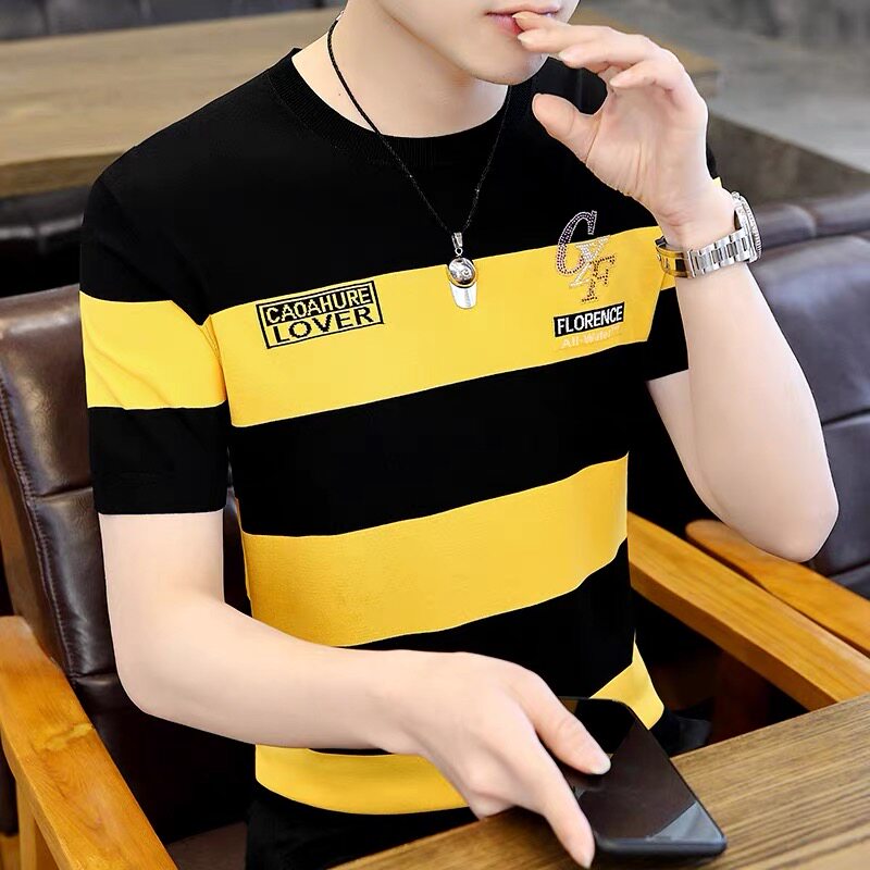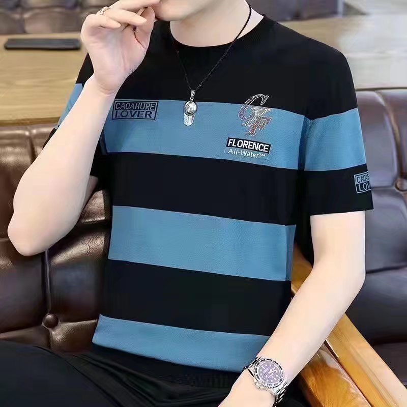9.9 ПИТАЦИЯ БОЛЬШИЙ ПРОДАЖИ ~ Счетчик снимает последний заказ крупных брендов и экспорта Мужской летнюю футболку с короткими рукавами полосатая футболка.