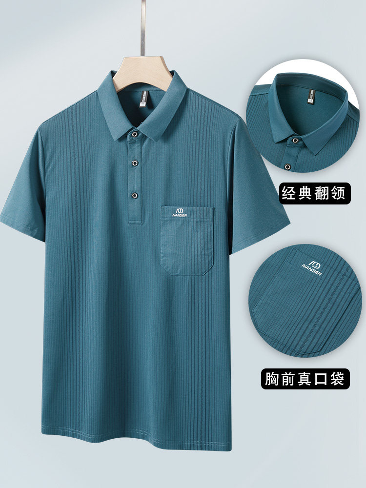Летняя одежда, футболка с коротким рукавом, шелковая футболка polo, для среднего возраста, высокий воротник