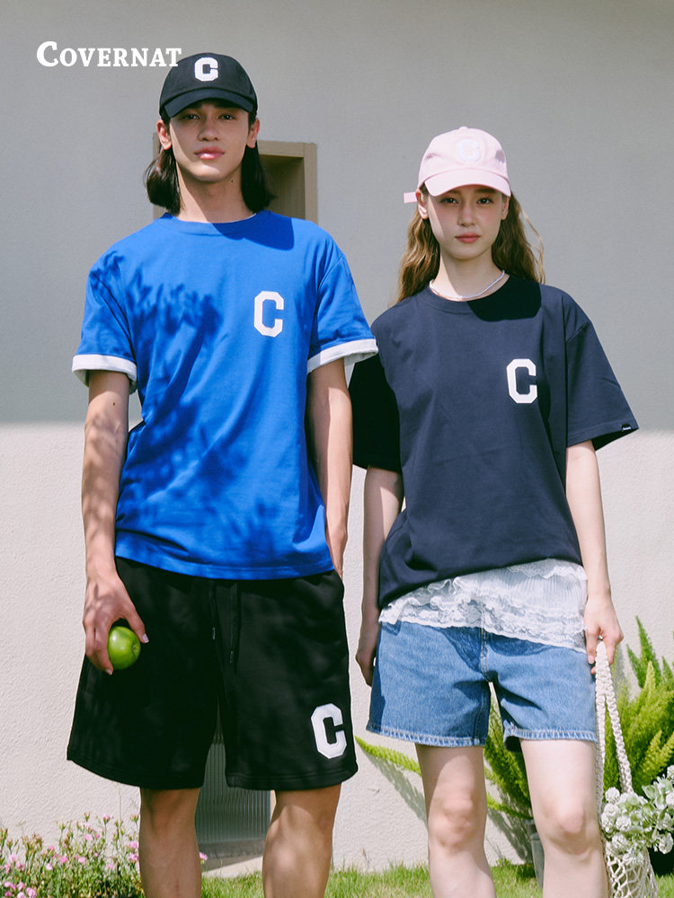 covernat Классическая футболка подходит для мужчин и женщин для влюбленных для отдыха, этнический стиль, круглый воротник, короткий рукав