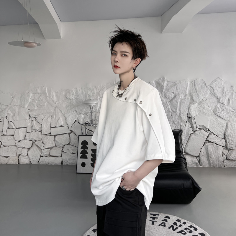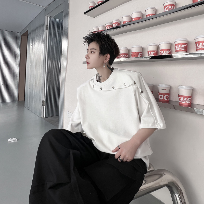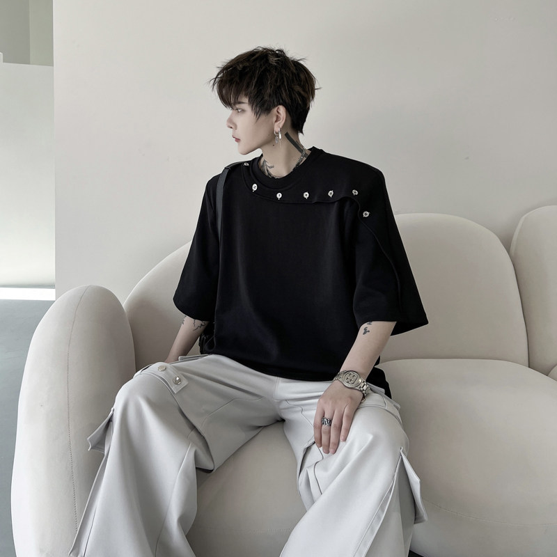 Летние наплечники, дизайнерская футболка с коротким рукавом, изысканный стиль, тренд сезона, в корейском стиле, простой и элегантный дизайн