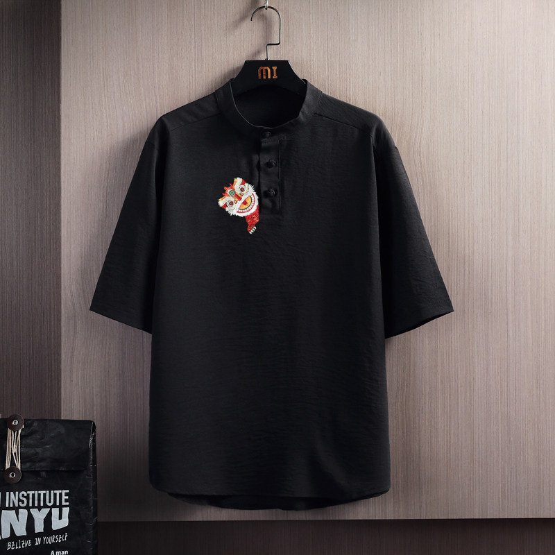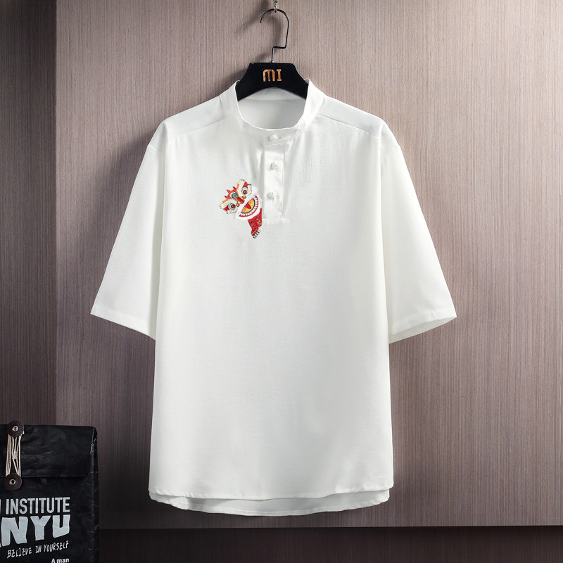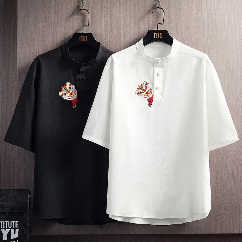 Мужская летняя шелковая футболка, с вышивкой, китайский стиль, свободный крой, коллекция 2023