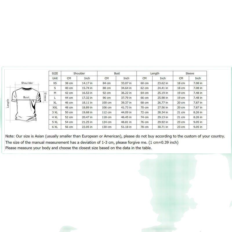 Привет! Добро пожаловать в наш магазин! Очень модные и стильные свободные футболки с классным 3D-принтом. Их очень легко одеть и создать свой собственный стиль. Высококачественный безопасный материал и гладкий модный дизайн в уличном стиле, эластичный и удобный в носке. Когда получите, будете очень рады! Запасов достаточно. Машинная и ручная стирка, поверхность без каких-либо насадок, имеет хорошую воздухопроницаемость. Чтобы избежать заказа неправильного размера, мы настоятельно рекомендуем вам сравнить ваш размер с нашей таблицей размеров перед покупкой. Цвет: как показано на картинке. Размер: XXS-6XL (как на схеме). Внимание: 1. Из-за ручного измерения возможна погрешность в 1-2 см. 2. Цвет может немного отличаться из-за монитора. Надеюсь на ваше понимание!