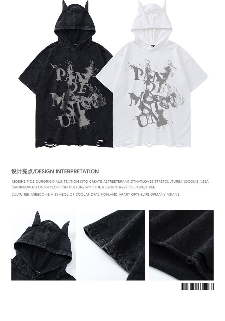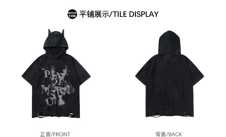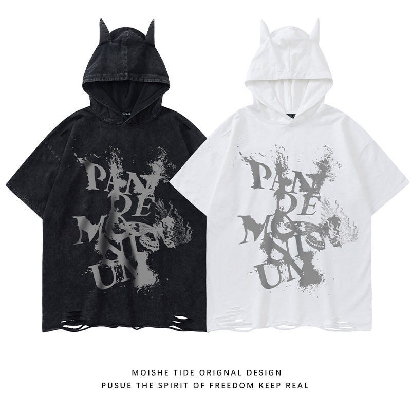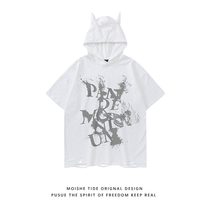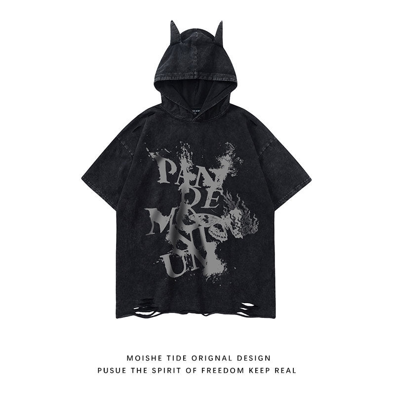 Футболка с коротким рукавом с капюшоном подходит для мужчин и женщин в стиле хип-хоп, в американском стиле, свободный крой