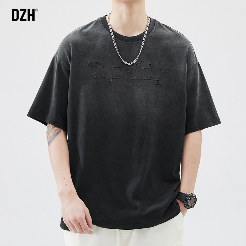 Хлопковая футболка с коротким рукавом с круглым воротником, в американском стиле, короткий рукав