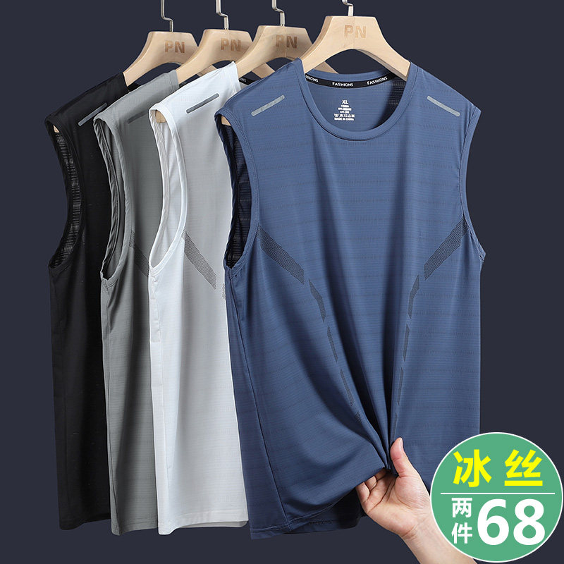 Летняя шелковая быстросохнущая футболка с коротким рукавом, жилет, мужская летняя одежда для отдыха, для среднего возраста, оверсайз
